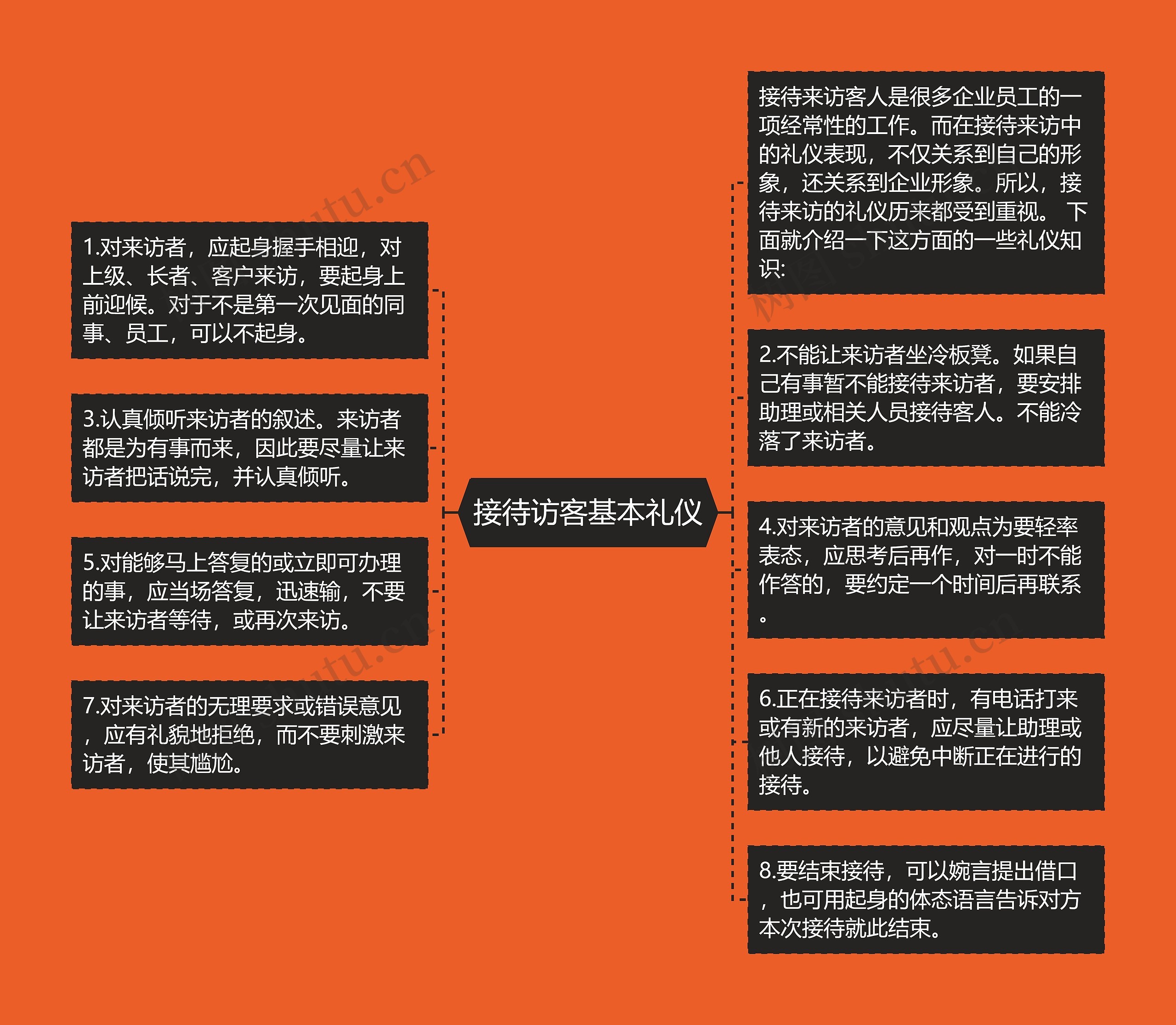7.对来访者的无理要求或错误意见,应有礼貌地拒绝,而不要刺激来访者,使其尴尬。