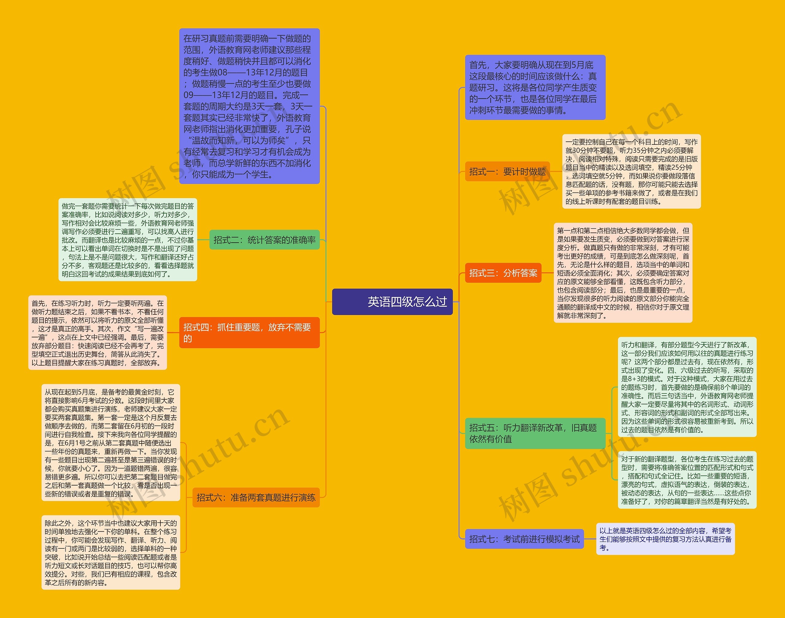 树图思维导图提供《 英语四级怎么过》在线思维导图免费制作,点击“编辑”按钮,可对《 英语四级怎么过》进行在线思维导图编辑,本思维导图属于思维导图模板主题,文件编号是:e57abfdb1bec7af2aec8dc56e3da97cf