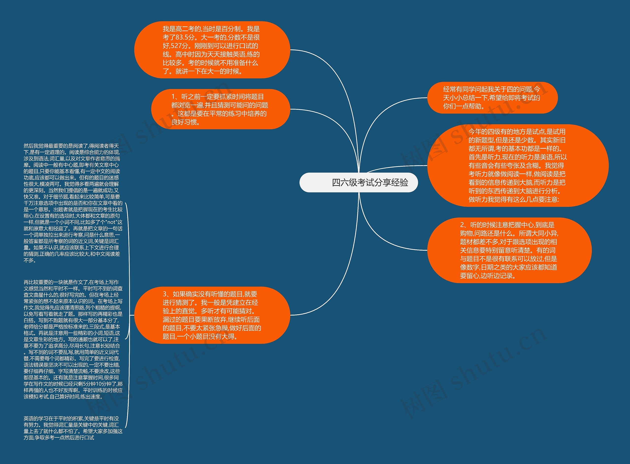 树图思维导图提供《 四六级考试分享经验》在线思维导图免费制作,点击“编辑”按钮,可对《 四六级考试分享经验》进行在线思维导图编辑,本思维导图属于思维导图模板主题,文件编号是:b5de4c4e595f6a82876bd7c6b88129a6