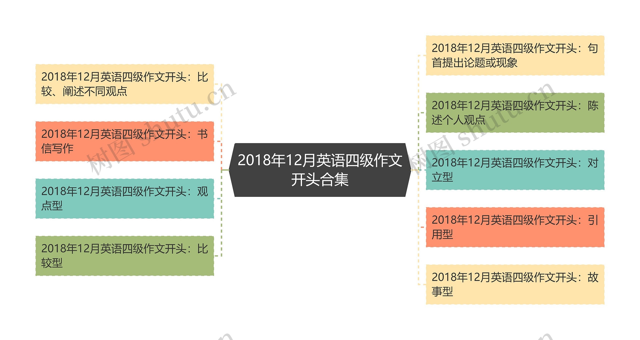 树图思维导图提供《2018年12月英语四级作文开头合集》在线思维导图免费制作,点击“编辑”按钮,可对《2018年12月英语四级作文开头合集》进行在线思维导图编辑,本思维导图属于思维导图模板主题,文件编号是:b4f8b56f19a342ff9639fa1f3a968ae5