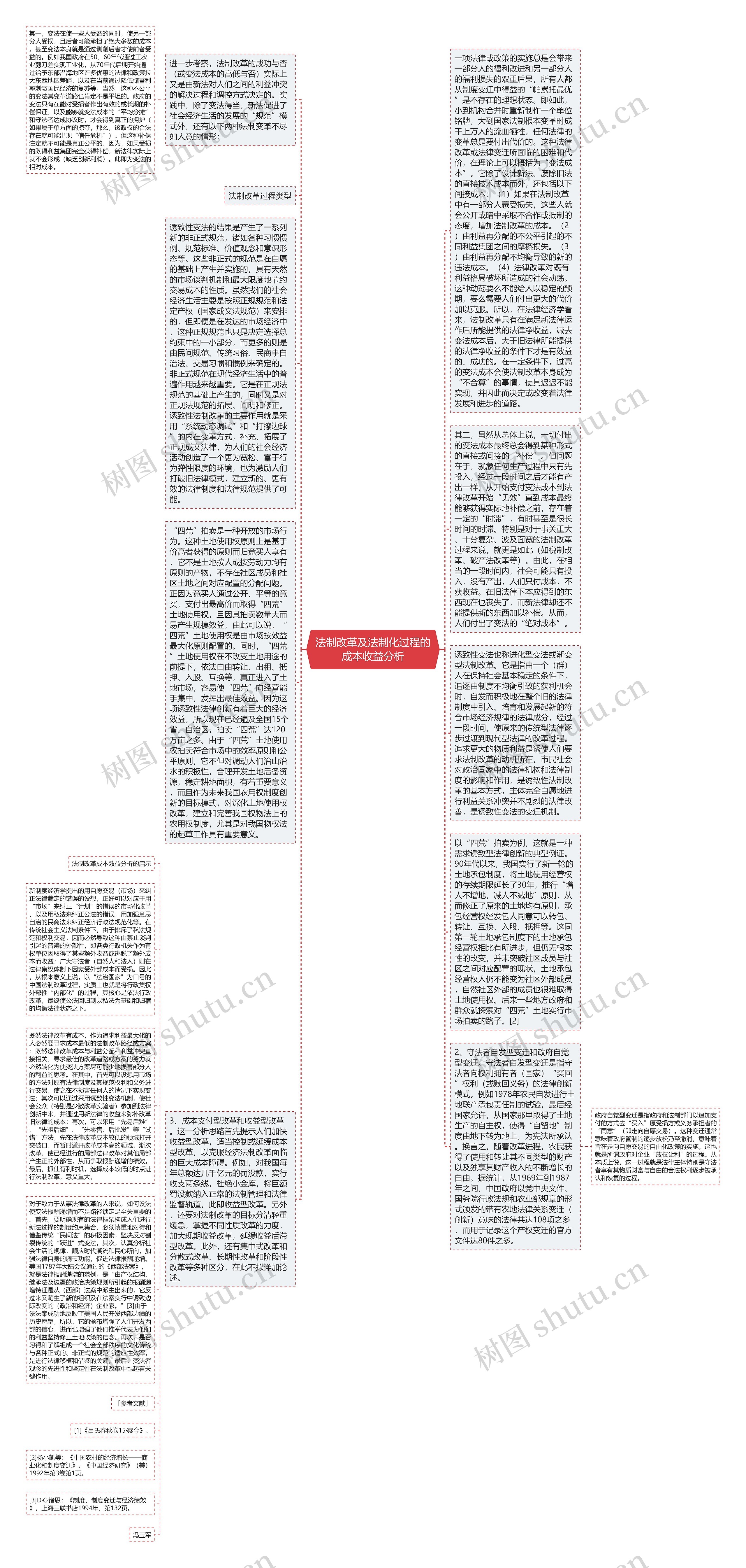 3、成本支付型改革和收益型改革。这一分析思路首先提示人们加快收益型改革,适当控制或延缓成本型改革,以克服经济法制改革面临的巨大成本障碍。例如,对我国每年总额达几千亿元的罚没款,实行收支两条线,杜绝小金库,将巨额罚没款纳入正常的法制管理和法律监督轨道,此即收益型改革。另外,还要对法制改革的目标分清轻重缓急,掌握不同性质改革的力度,加大现期收益改革,延缓收益后滞型改革。此外,还有集中式改革和分散式改革、长期性改革和阶段性改革等多种区分,在此不拟详加论述。