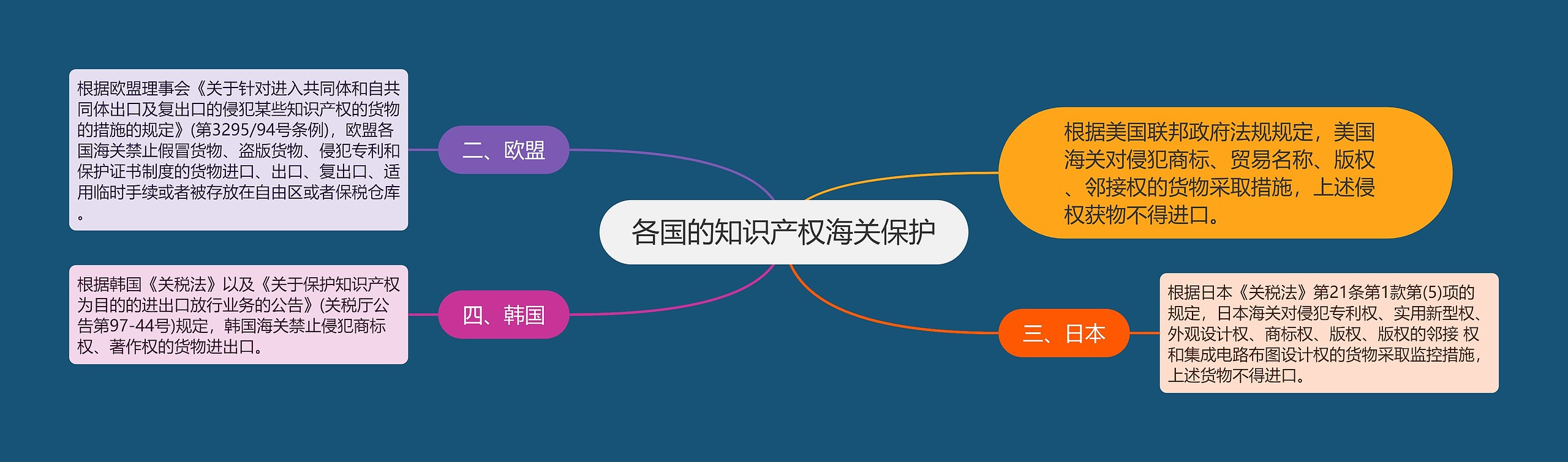 树图思维导图提供《各国的知识产权海关保护》在线思维导图免费制作,点击“编辑”按钮,可对《各国的知识产权海关保护》进行在线思维导图编辑,本思维导图属于思维导图模板主题,文件编号是:8e380fbd6c8700e5747a87ce62c1ea62