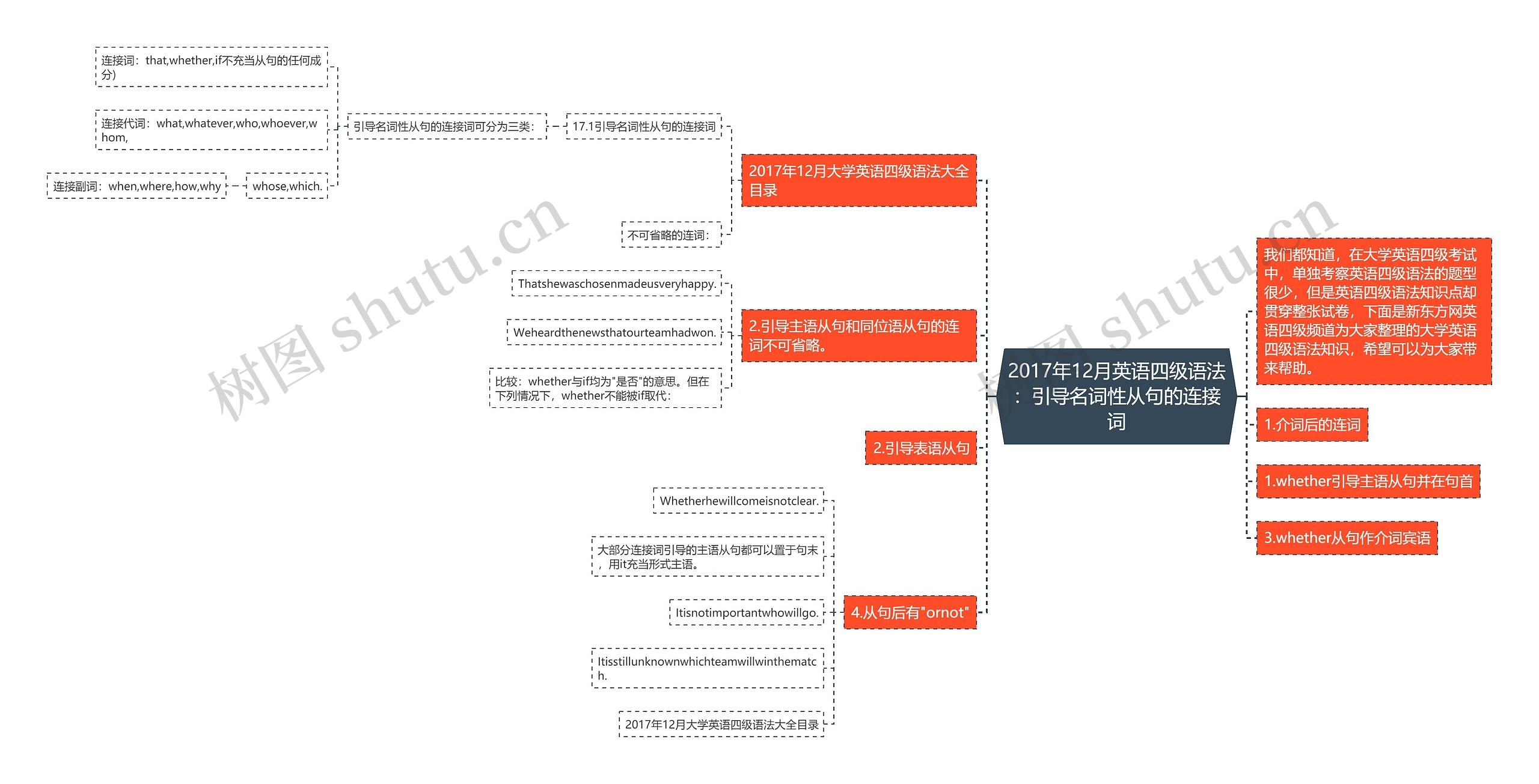 树图思维导图提供《2017年12月英语四级语法:引导名词性从句的连接词》在线思维导图免费制作,点击“编辑”按钮,可对《2017年12月英语四级语法:引导名词性从句的连接词》进行在线思维导图编辑,本思维导图属于思维导图模板主题,文件编号是:b0fcd415407ebed9b5f27d19958ba11d