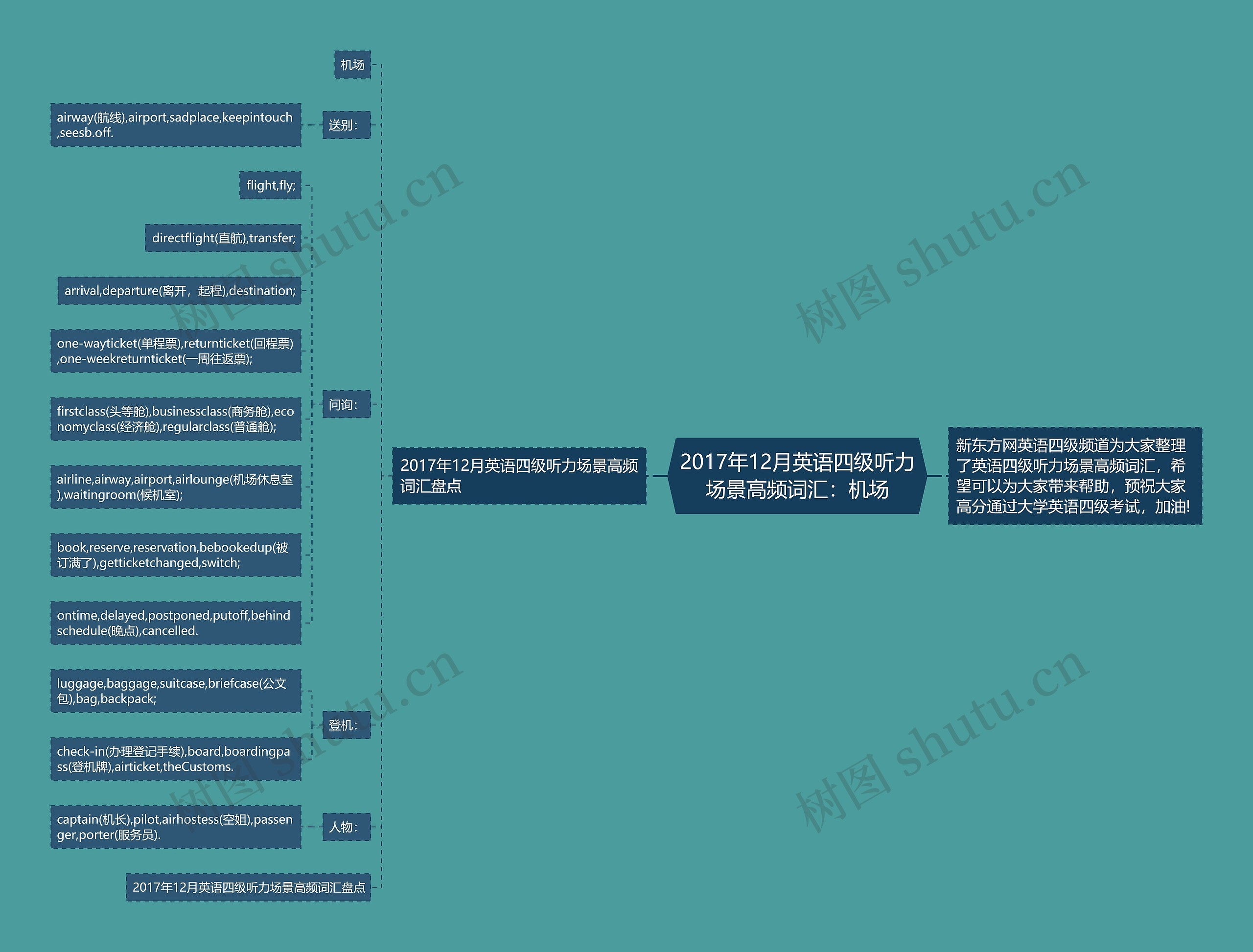 树图思维导图提供《2017年12月英语四级听力场景高频词汇:机场》在线思维导图免费制作,点击“编辑”按钮,可对《2017年12月英语四级听力场景高频词汇:机场》进行在线思维导图编辑,本思维导图属于思维导图模板主题,文件编号是:4c33bd19422cd9d4c91efef345ac95d3