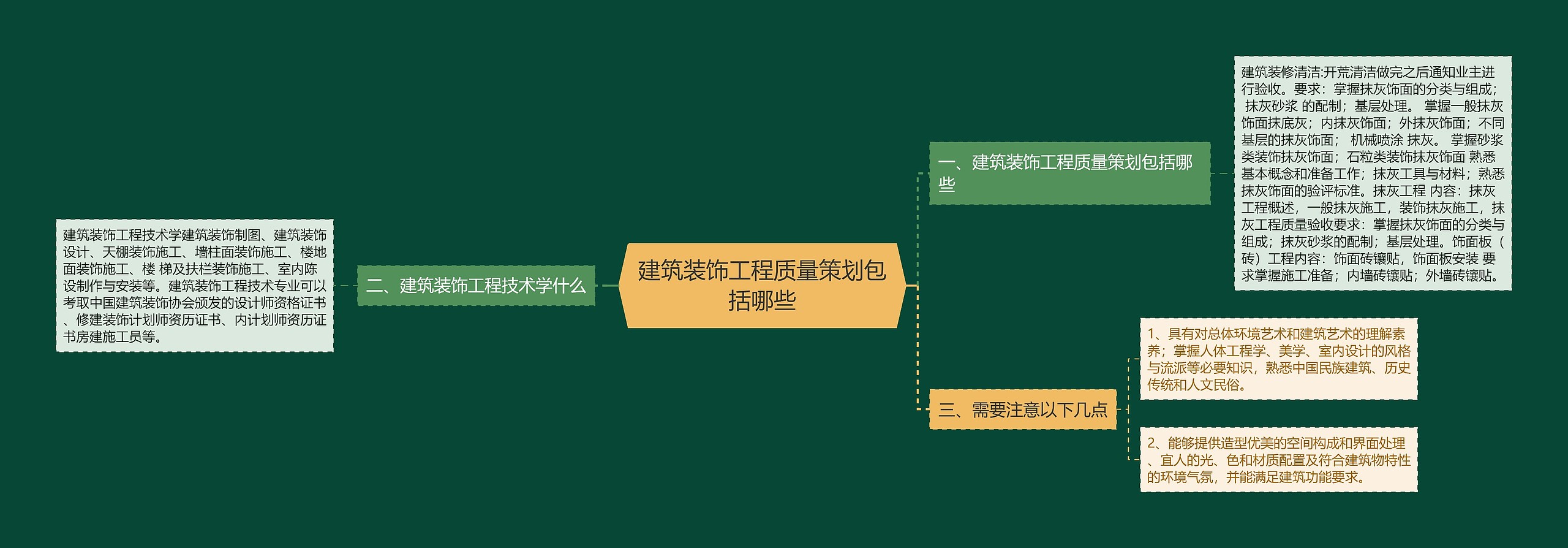 树图思维导图提供《建筑装饰工程质量策划包括哪些》在线思维导图免费制作,点击“编辑”按钮,可对《建筑装饰工程质量策划包括哪些》进行在线思维导图编辑,本思维导图属于思维导图模板主题,文件编号是:9baed0bdd488f91475c77586c0aca0dd