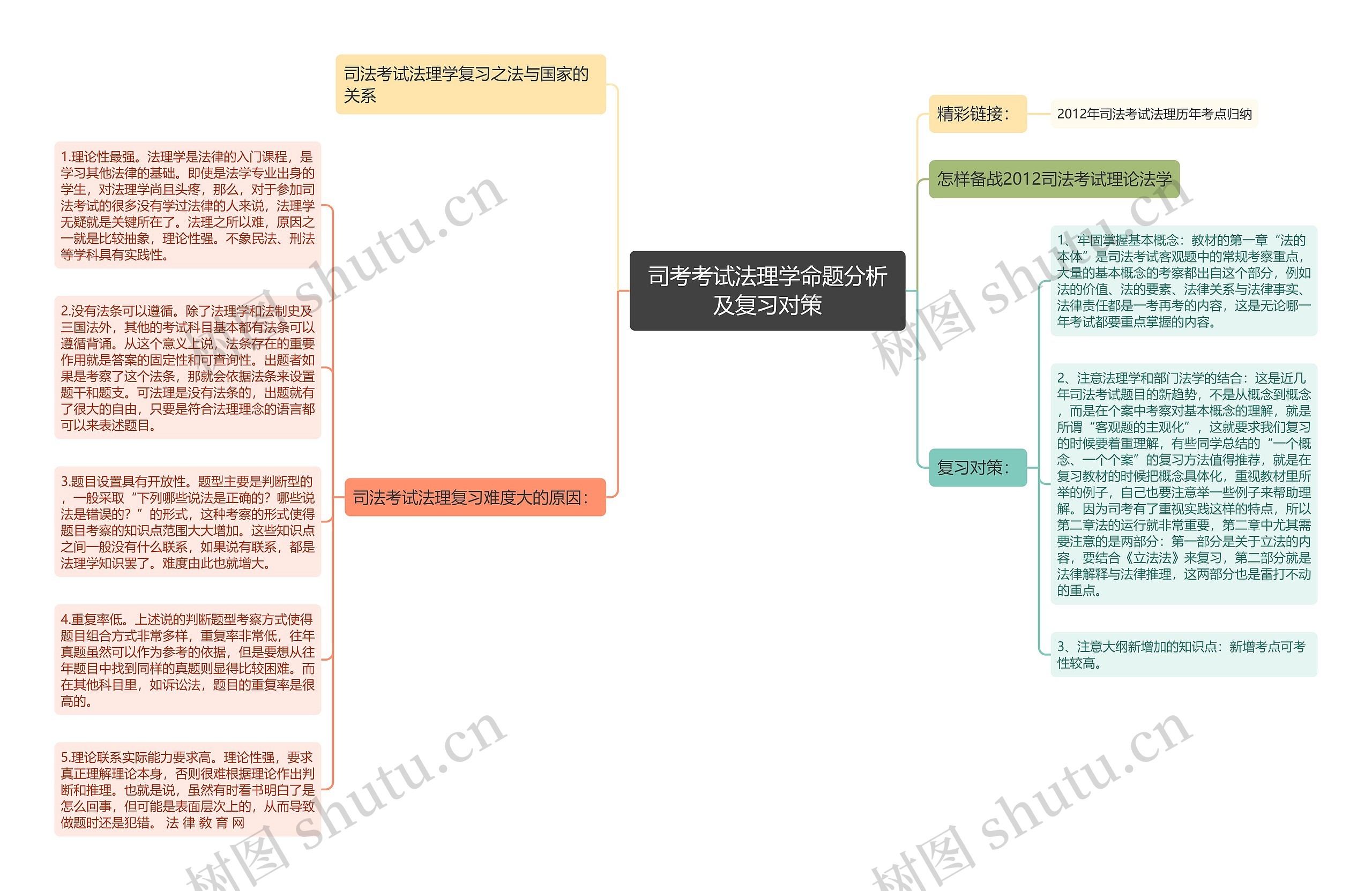 1.理论性最强。法理学是法律的入门课程,是学习其他法律的基础。即使是法学专业出身的学生,对法理学尚且头疼,那么,对于参加司法考试的很多没有学过法律的人来说,法理学无疑就是关键所在了。法理之所以难,原因之一就是比较抽象,理论性强。不象民法、刑法等学科具有实践性。