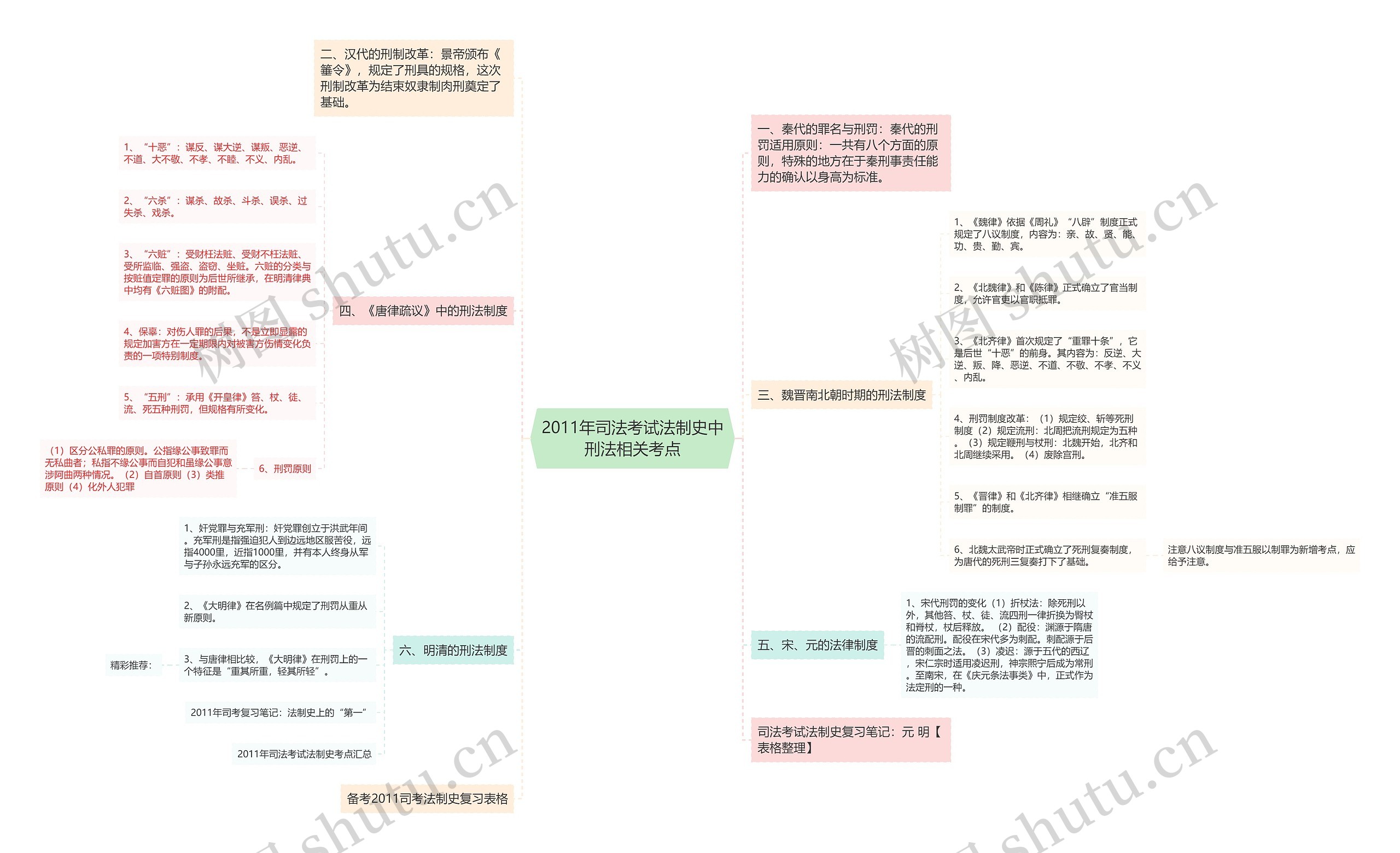 树图思维导图提供《2011年司法考试法制史中刑法相关考点》在线思维导图免费制作,点击“编辑”按钮,可对《2011年司法考试法制史中刑法相关考点》进行在线思维导图编辑,本思维导图属于思维导图模板主题,文件编号是:d46657de14c655466192576407f209dd