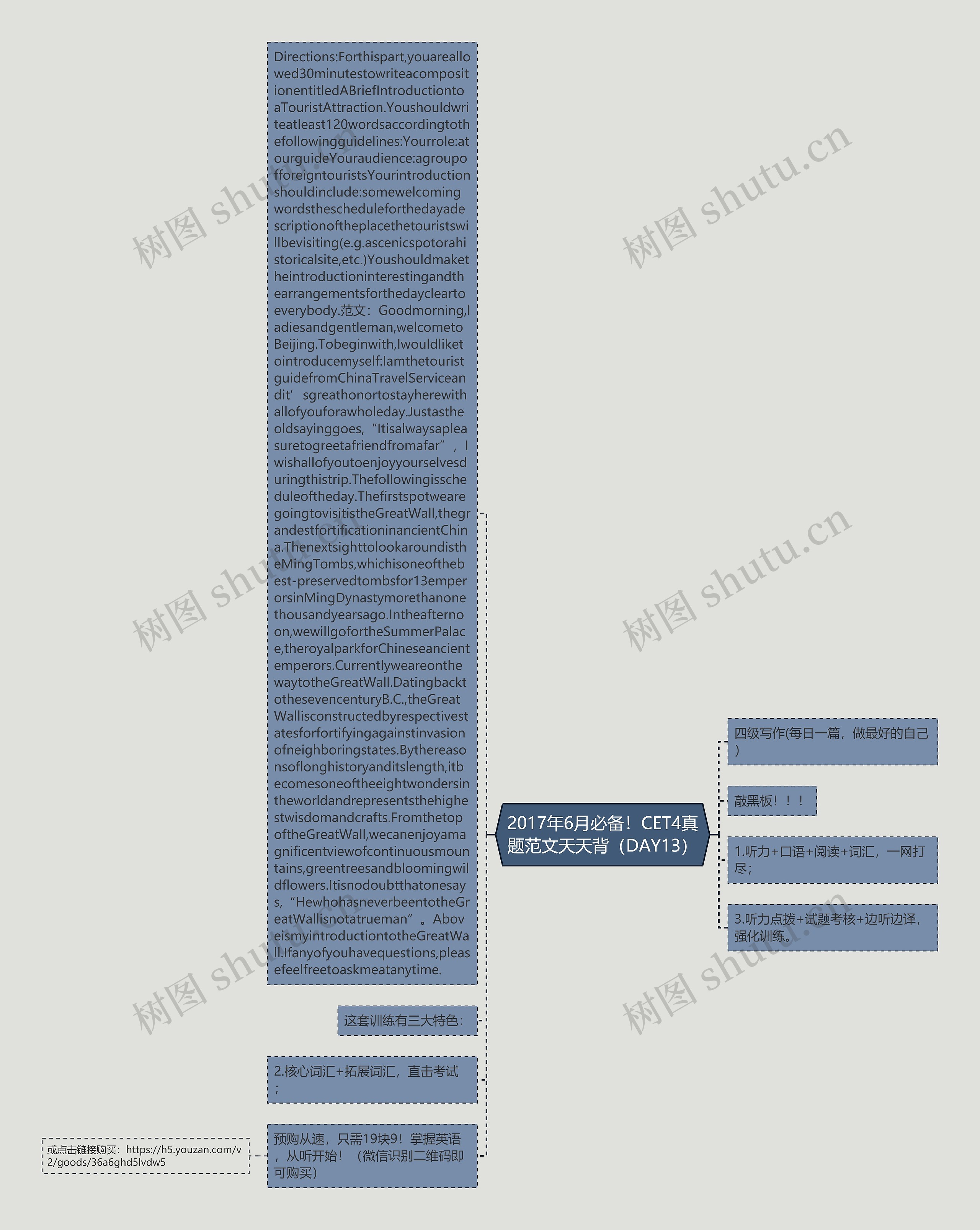 Directions:Forthispart,youareallowed30minutestowriteacompositionentitledABriefIntroductiontoaTouristAttraction.Youshouldwriteatleast120wordsaccordingtothefollowingguidelines:Yourrole:atourguideYouraudience:agroupofforeigntouristsYourintroductionshouldinclude:somewelcomingwordsthescheduleforthedayadescriptionoftheplacethetouristswillbevisiting(e.g.ascenicspotorahistoricalsite,etc.)Youshouldmaketheintroductioninterestingandthearrangementsforthedaycleartoeverybody.范文:Goodmorning,ladiesandgentleman,welcometoBeijing.Tobeginwith,Iwouldliketointroducemyself:IamthetouristguidefromChinaTravelServiceandit’sgreathonortostayherewithallofyouforawholeday.Justastheoldsayinggoes,“Itisalwaysapleasuretogreetafriendfromafar”,Iwishallofyoutoenjoyyourselvesduringthistrip.Thefollowingisscheduleoftheday.ThefirstspotwearegoingtovisitistheGreatWall,thegrandestfortificationinancientChina.ThenextsighttolookaroundistheMingTombs,whichisoneofthebest-preservedtombsfor13emperorsinMingDynastymorethanonethousandyearsago.Intheafternoon,wewillgofortheSummerPalace,theroyalparkforChineseancientemperors.CurrentlyweareonthewaytotheGreatWall.DatingbacktothesevencenturyB.C.,theGreatWallisconstructedbyrespectivestatesforfortifyingagainstinvasionofneighboringstates.Bythereasonsoflonghistoryanditslength,itbecomesoneoftheeightwondersintheworldandrepresentsthehighestwisdomandcrafts.FromthetopoftheGreatWall,wecanenjoyamagnificentviewofcontinuousmountains,greentreesandbloomingwildflowers.Itisnodoubtthatonesays,“HewhohasneverbeentotheGreatWallisnotatrueman”。AboveismyintroductiontotheGreatWall.Ifanyofyouhavequestions,pleasefeelfreetoaskmeatanytime.