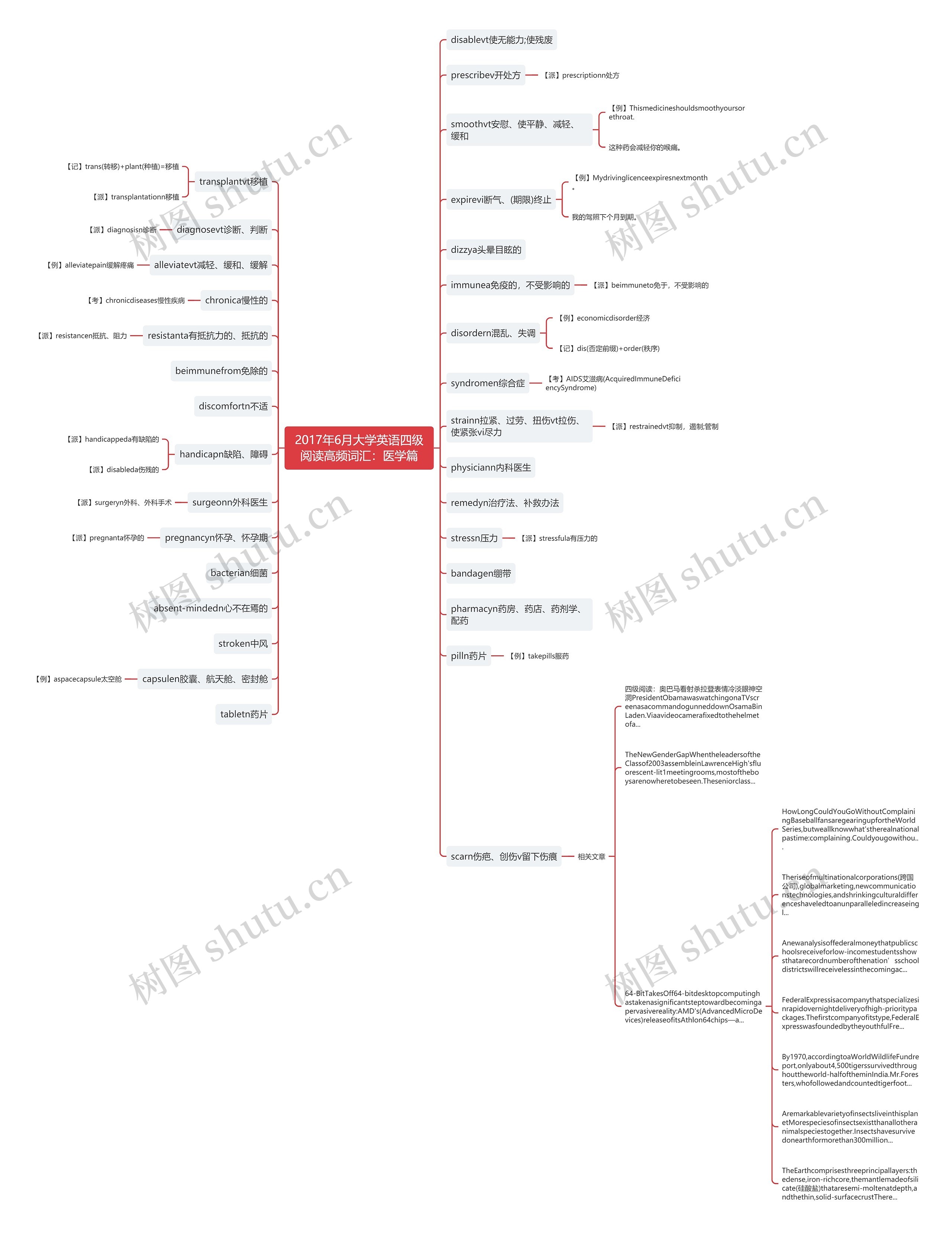 2017年6月大学英语四级阅读高频词汇:医学篇思维导图