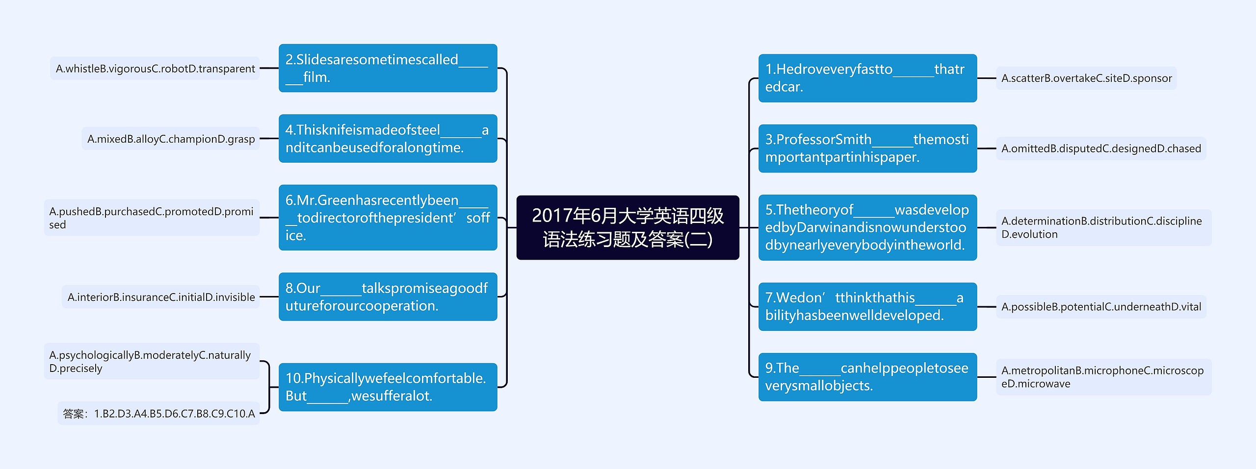 答案:1.B2.D3.A4.B5.D6.C7.B8.C9.C10.A