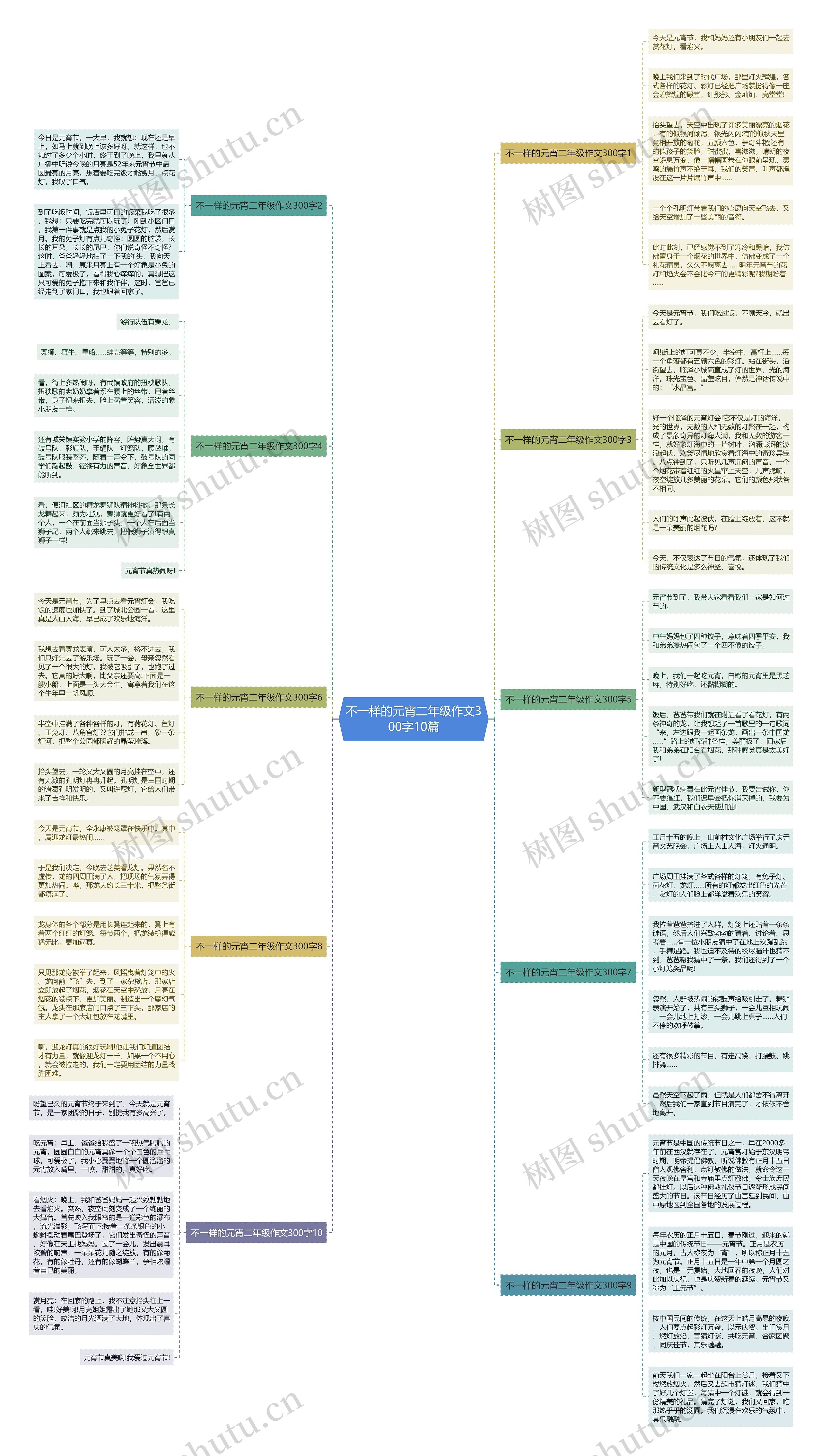 树图思维导图提供《不一样的元宵二年级作文300字10篇》在线思维导图免费制作,点击“编辑”按钮,可对《不一样的元宵二年级作文300字10篇》进行在线思维导图编辑,本思维导图属于思维导图模板主题,文件编号是:33092759277b6ae038c0606e309a70b6
