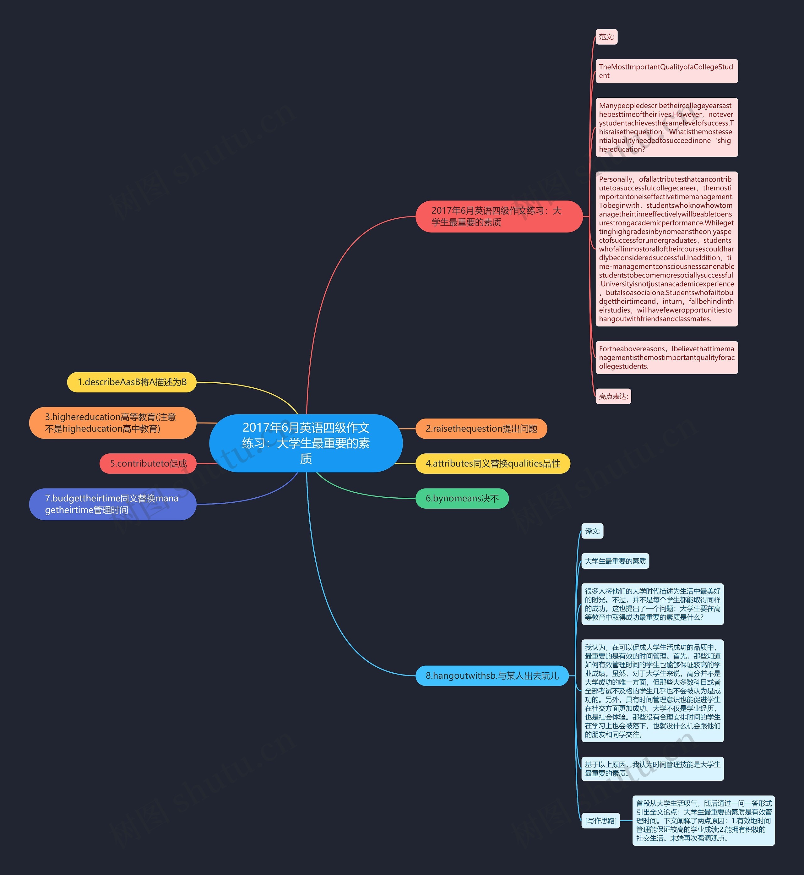 Personally,ofallattributesthatcancontributetoasuccessfulcollegecareer,themostimportantoneiseffectivetimemanagement.Tobeginwith,studentswhoknowhowtomanagetheirtimeeffectivelywillbeabletoensurestrongacademicperformance.Whilegettinghighgradesinbynomeanstheonlyaspectofsuccessforundergraduates,studentswhofailinmostoralloftheircoursescouldhardlybeconsideredsuccessful.Inaddition,time-managementconsciousnesscanenablestudentstobecomemoresociallysuccessful.Universityisnotjustanacademicexperience,butalsoasocialone.Studentswhofailtobudgettheirtimeand,inturn,fallbehindintheirstudies,willhavefeweropportunitiestohangoutwithfriendsandclassmates.