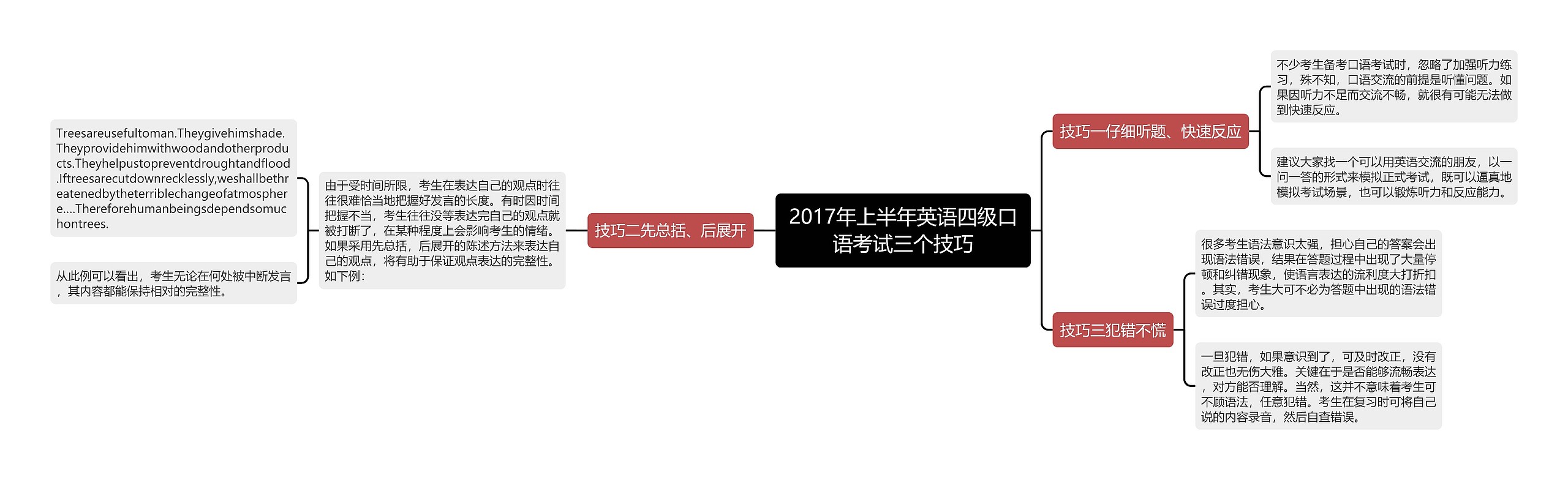 树图思维导图提供《2017年上半年英语四级口语考试三个技巧》在线思维导图免费制作,点击“编辑”按钮,可对《2017年上半年英语四级口语考试三个技巧》进行在线思维导图编辑,本思维导图属于思维导图模板主题,文件编号是:d7f55eadea5920744af85629558fa303