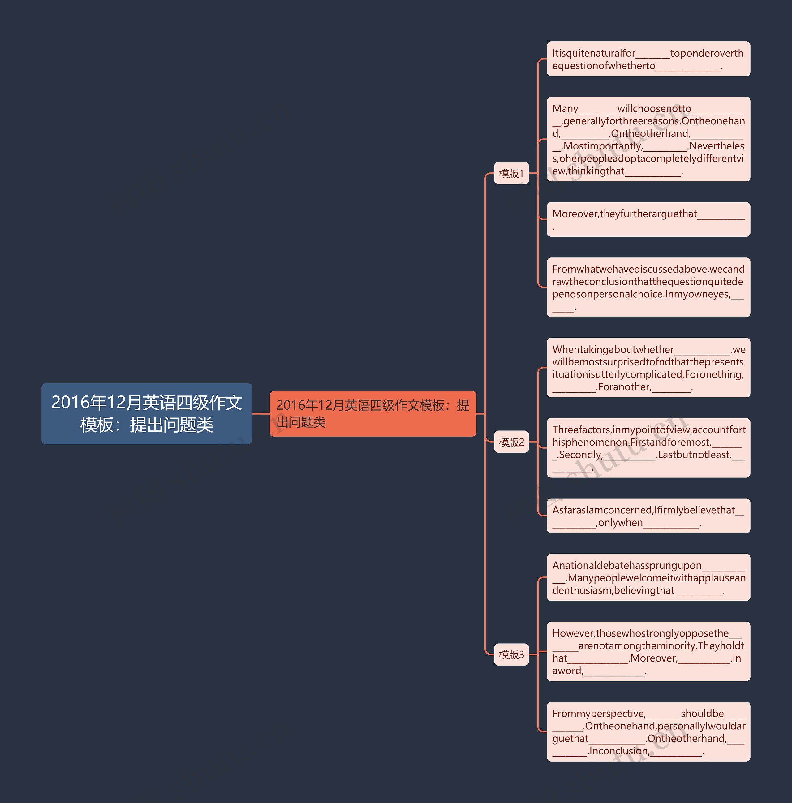 2016年12月英语四级作文模板:提出问题类 模版1 It is quite natural for ________to ponder over the question of whether to _______________. Many _________will choose not to_