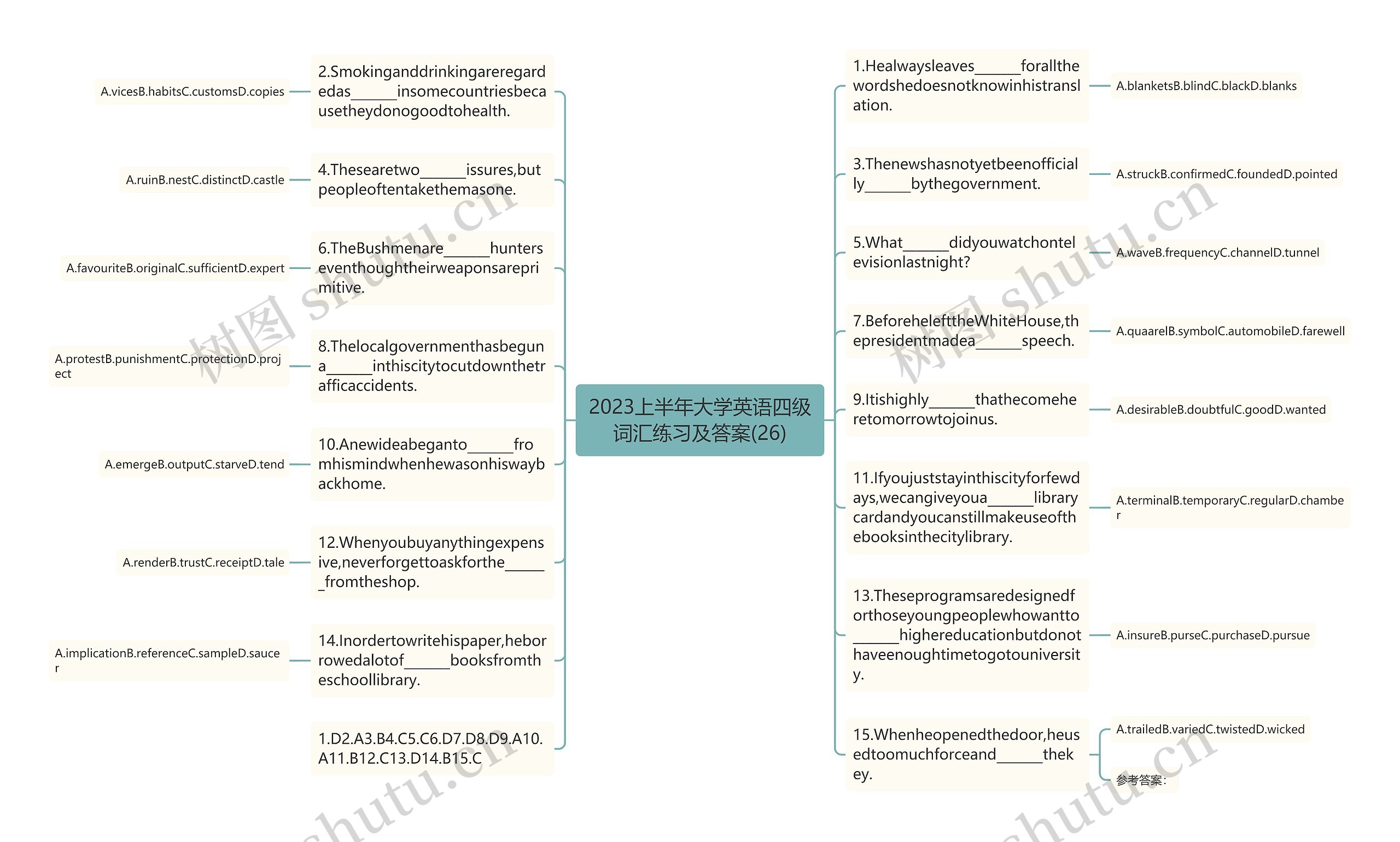 1.D2.A3.B4.C5.C6.D7.D8.D9.A10.A11.B12.C13.D14.B15.C