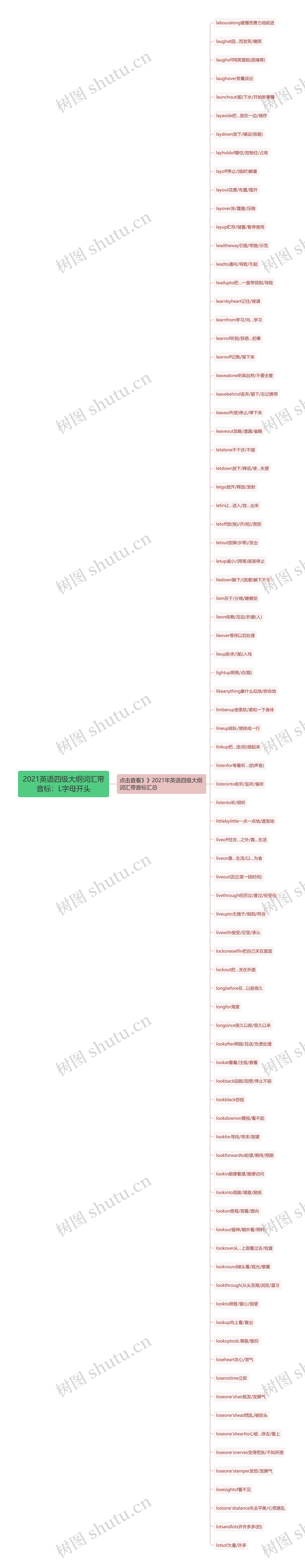 树图思维导图提供《2021英语四级大纲词汇带音标:L字母开头》在线思维导图免费制作,点击“编辑”按钮,可对《2021英语四级大纲词汇带音标:L字母开头》进行在线思维导图编辑,本思维导图属于思维导图模板主题,文件编号是:96e9173b87ddc9a6bfe4fe0728a7b838