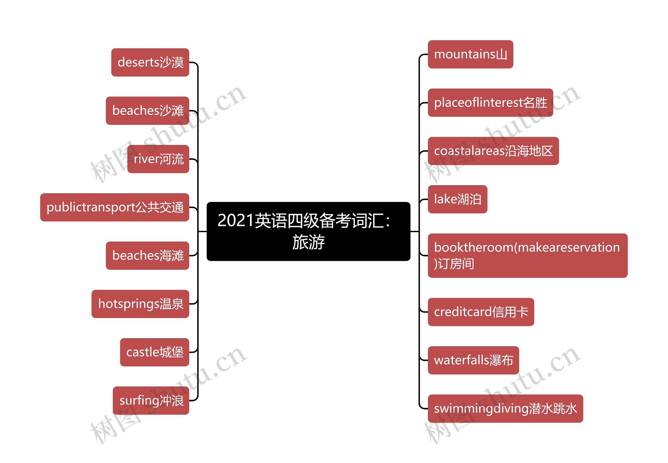 树图思维导图提供《2021英语四级备考词汇:旅游》在线思维导图免费制作,点击“编辑”按钮,可对《2021英语四级备考词汇:旅游》进行在线思维导图编辑,本思维导图属于思维导图模板主题,文件编号是:5d5cddb48aa1cd923a1844bd2af34de8