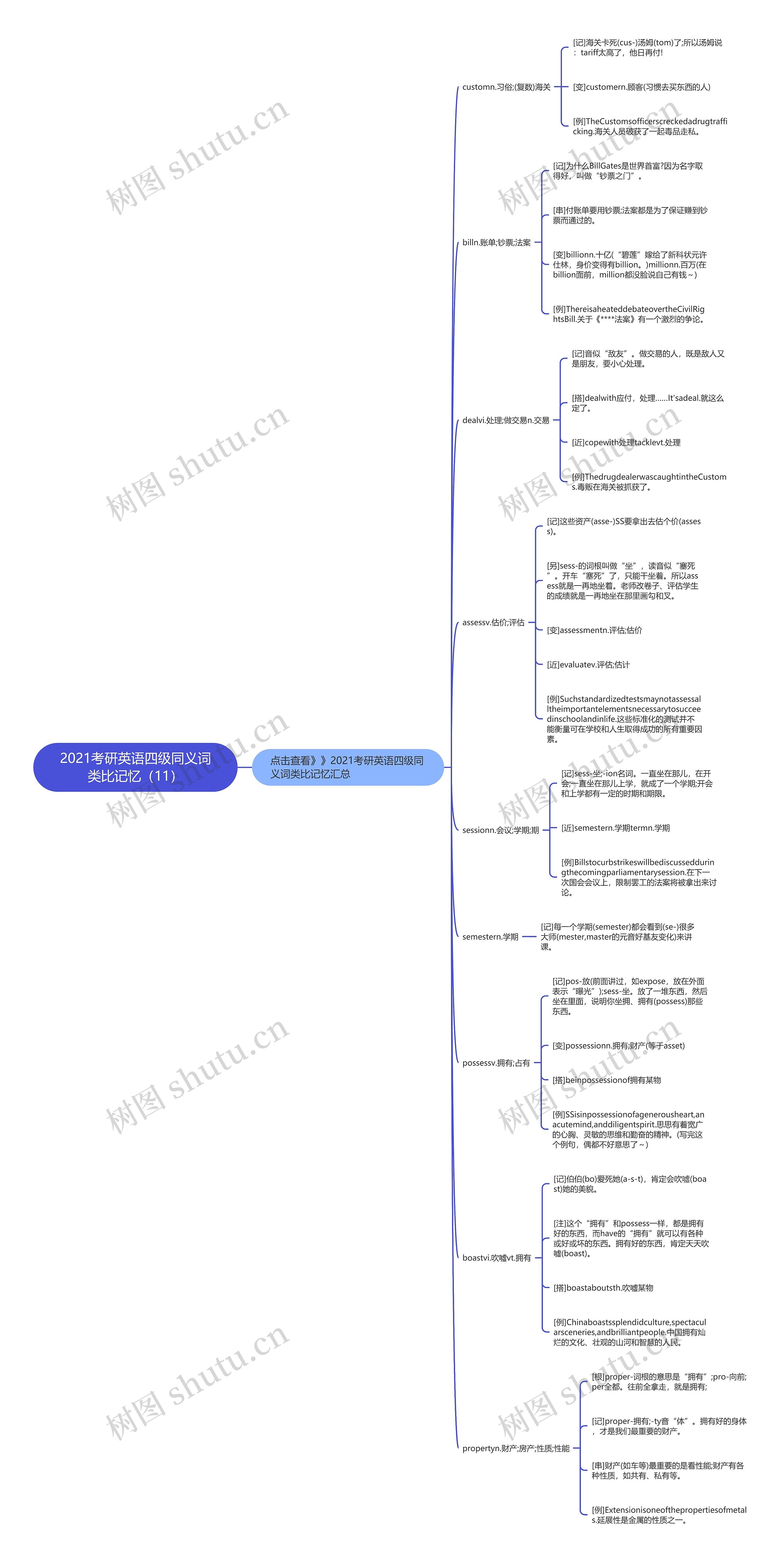 树图思维导图提供《2021考研英语四级同义词类比记忆(11)》在线思维导图免费制作,点击“编辑”按钮,可对《2021考研英语四级同义词类比记忆(11)》进行在线思维导图编辑,本思维导图属于思维导图模板主题,文件编号是:5d45bcf8ffb973f7309649d364612c18