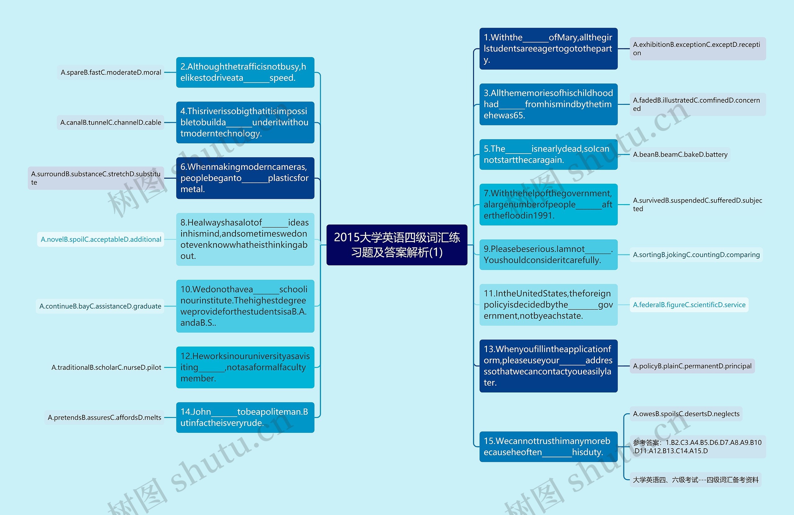 参考答案:1.B2.C3.A4.B5.D6.D7.A8.A9.B10.D11.A12.B13.C14.A15.D