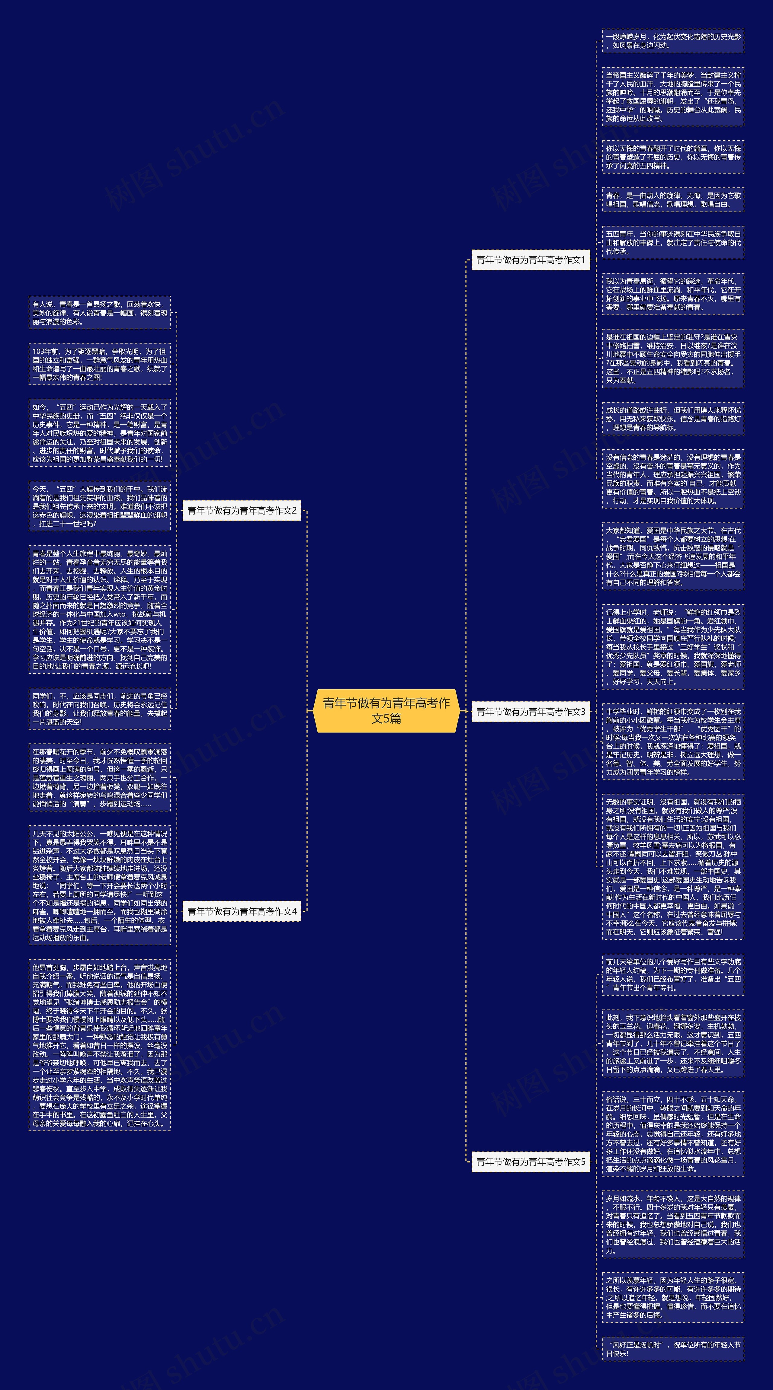 树图思维导图提供《青年节做有为青年高考作文5篇》在线思维导图免费制作,点击“编辑”按钮,可对《青年节做有为青年高考作文5篇》进行在线思维导图编辑,本思维导图属于思维导图模板主题,文件编号是:95faf2936351060d72f390c2ba025521