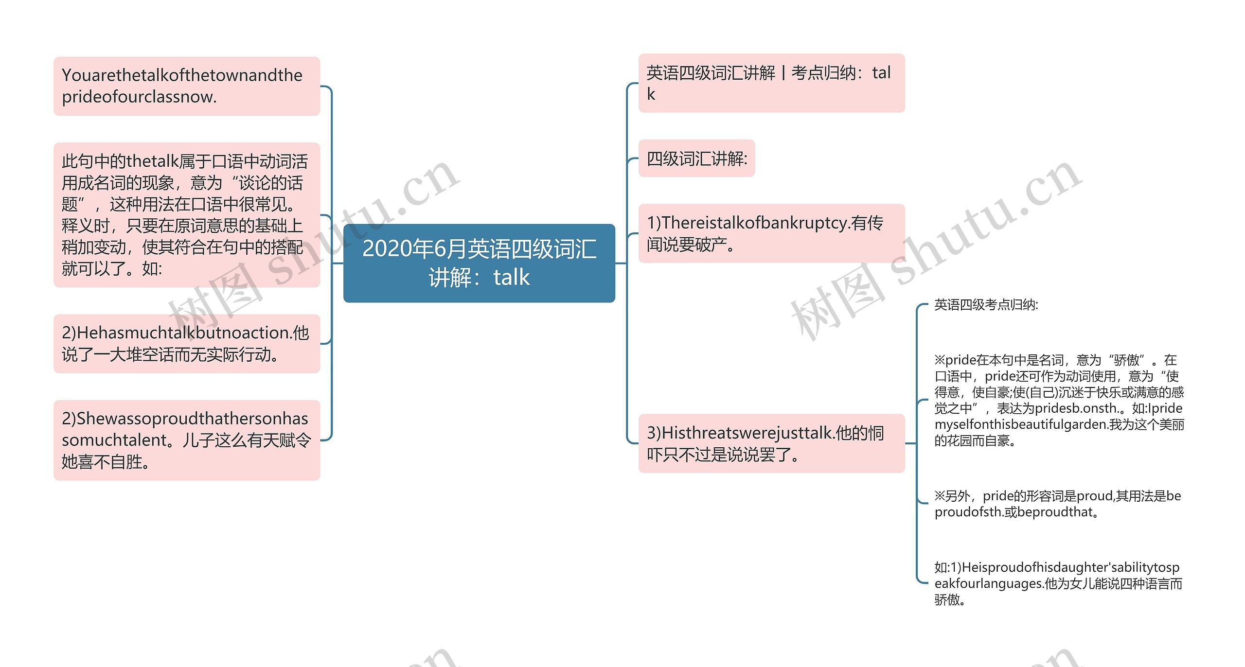 此句中的thetalk属于口语中动词活用成名词的现象,意为“谈论的话题”,这种用法在口语中很常见。释义时,只要在原词意思的基础上稍加变动,使其符合在句中的搭配就可以了。如: