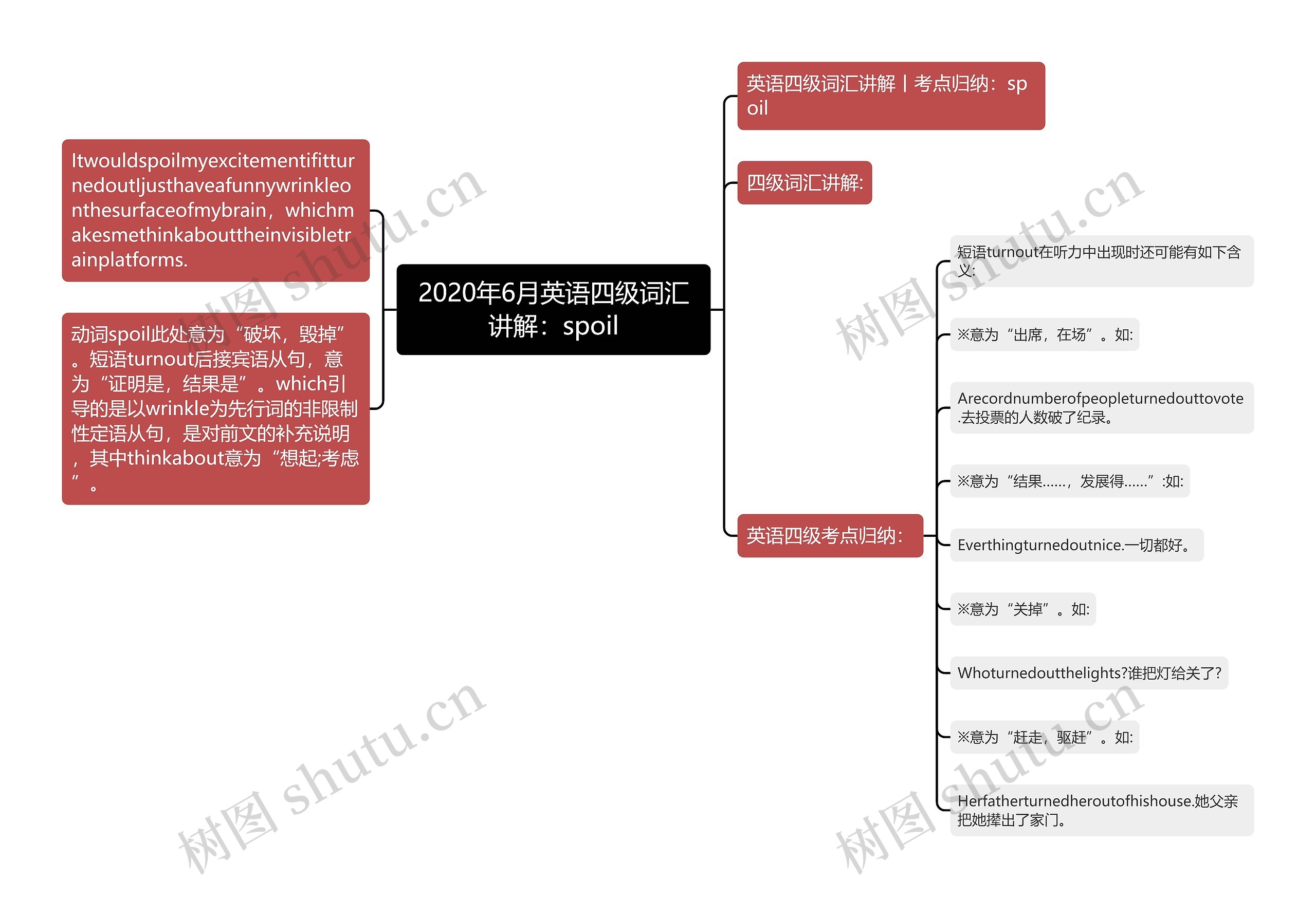 树图思维导图提供《2020年6月英语四级词汇讲解:spoil》在线思维导图免费制作,点击“编辑”按钮,可对《2020年6月英语四级词汇讲解:spoil》进行在线思维导图编辑,本思维导图属于思维导图模板主题,文件编号是:5904c610a4204c8c22835f88bd8e8042