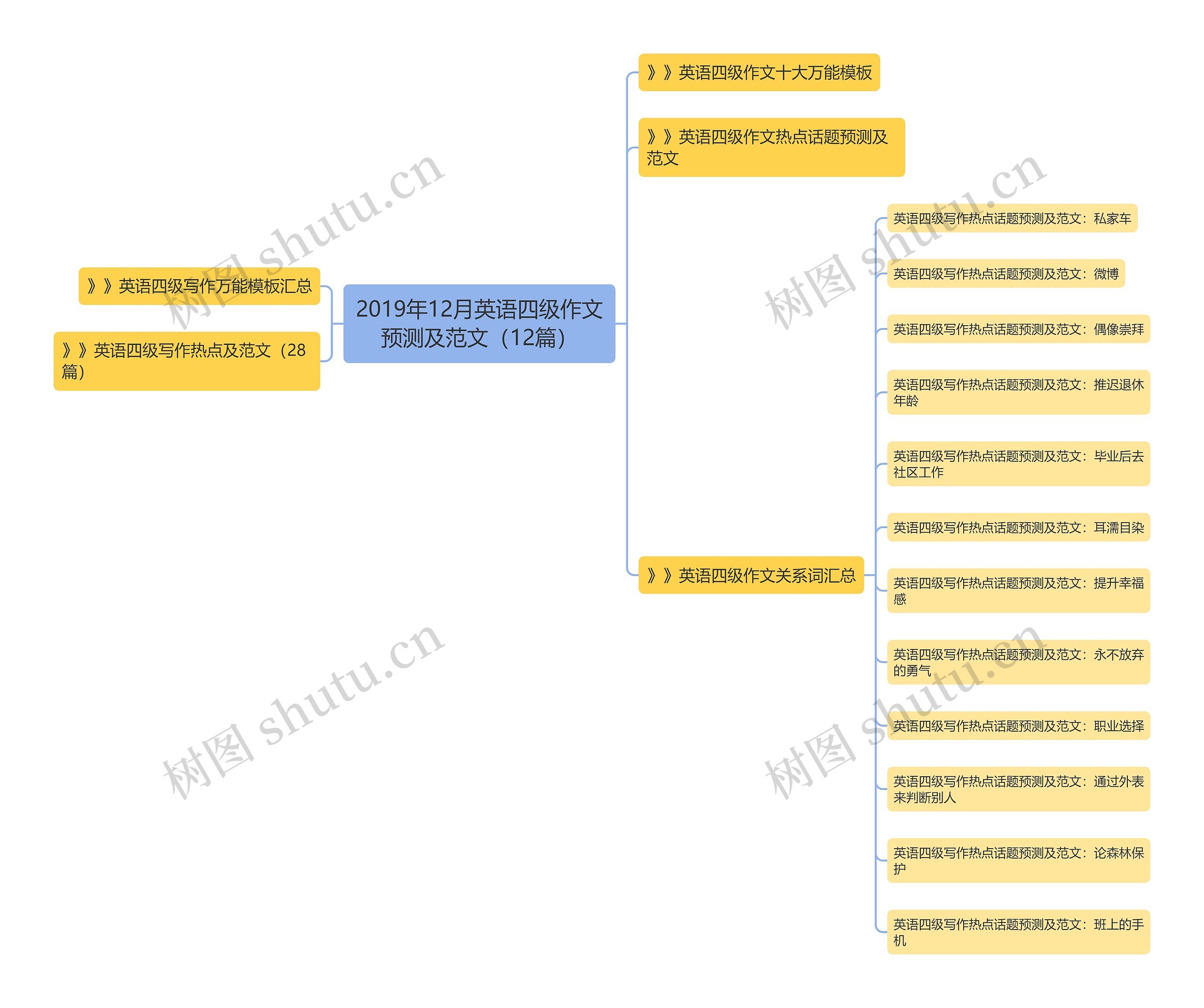 树图思维导图提供《2019年12月英语四级作文预测及范文(12篇)》在线思维导图免费制作,点击“编辑”按钮,可对《2019年12月英语四级作文预测及范文(12篇)》进行在线思维导图编辑,本思维导图属于思维导图模板主题,文件编号是:81d97bdf31f03df0a232f3d6cc4e0186
