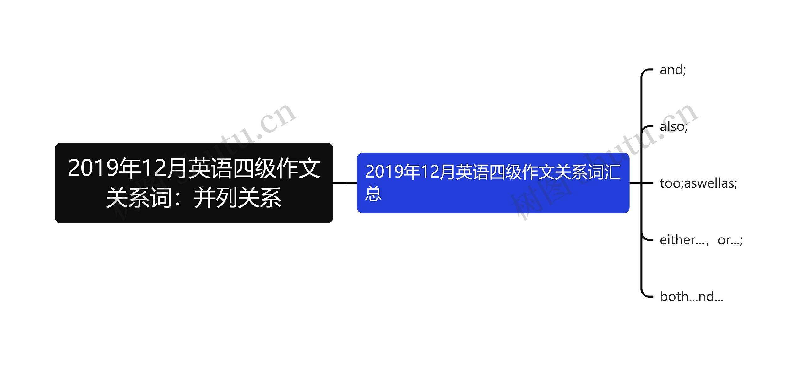 树图思维导图提供《2019年12月英语四级作文关系词:并列关系》在线思维导图免费制作,点击“编辑”按钮,可对《2019年12月英语四级作文关系词:并列关系》进行在线思维导图编辑,本思维导图属于思维导图模板主题,文件编号是:d4a22187774b141b83e7fe5b4f4541bc