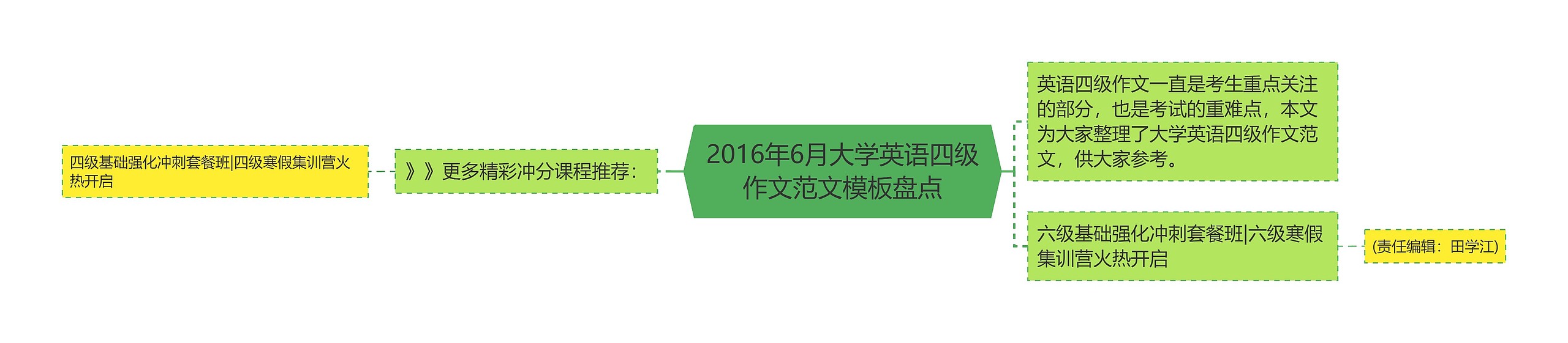 树图思维导图提供《2016年6月大学英语四级作文范文模板盘点》在线思维导图免费制作,点击“编辑”按钮,可对《2016年6月大学英语四级作文范文模板盘点》进行在线思维导图编辑,本思维导图属于思维导图模板主题,文件编号是:df199389c944018228fe75225dacd682