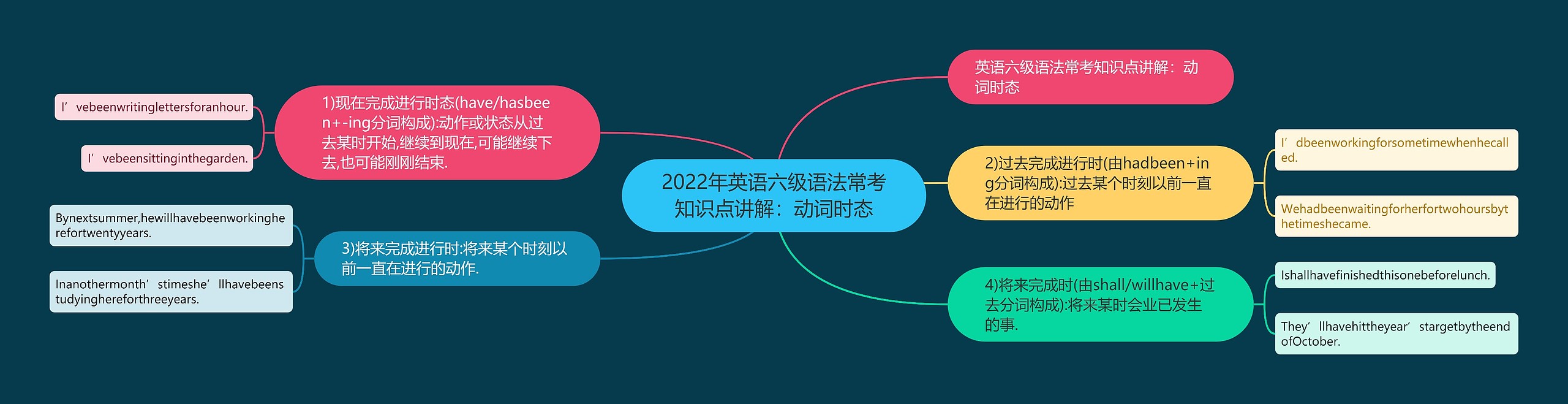 2)过去完成进行时(由hadbeen+ing分词构成):过去某个时刻以前一直在进行的动作