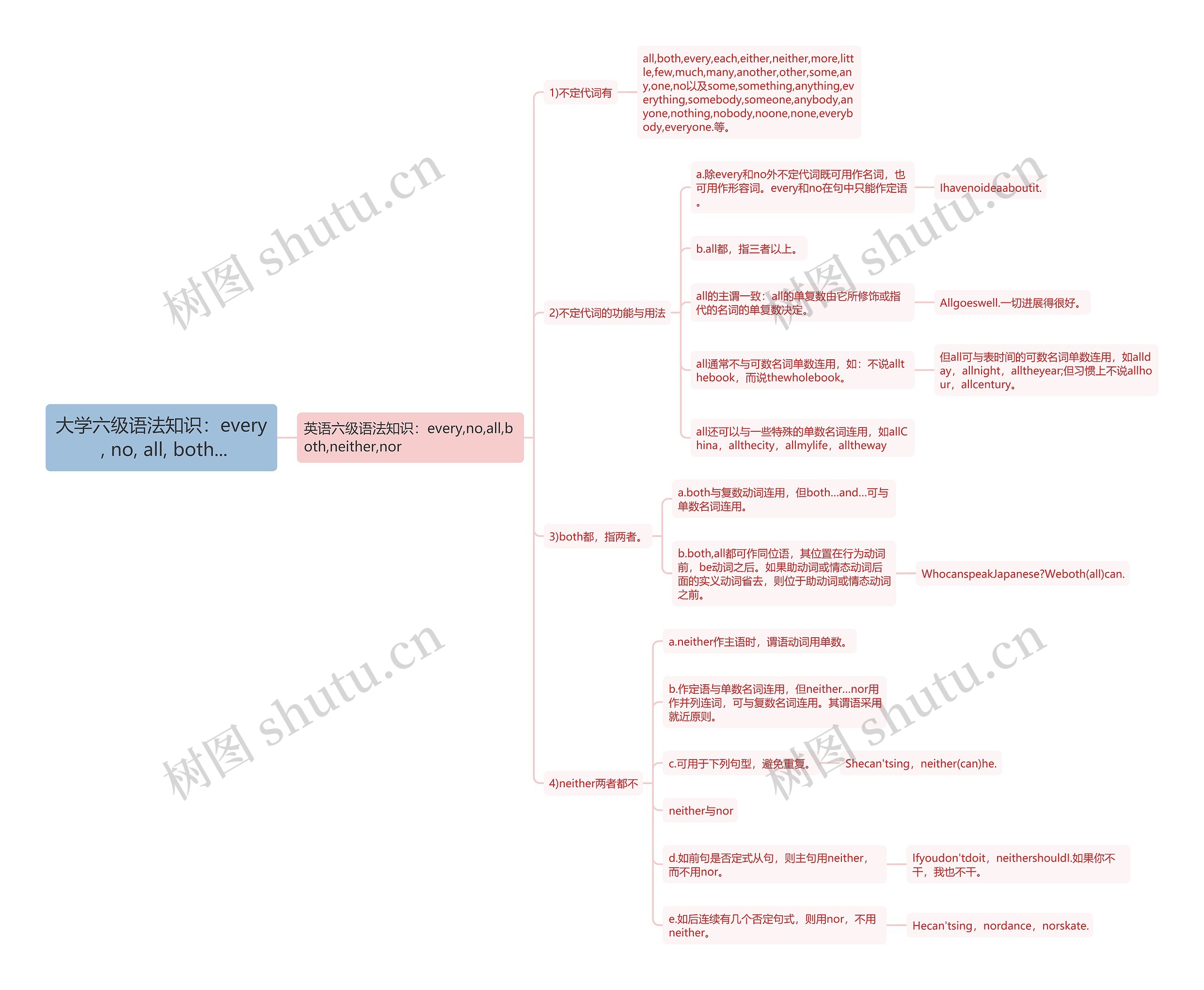 树图思维导图提供《大学六级语法知识:every , no, all, both...》在线思维导图免费制作,点击“编辑”按钮,可对《大学六级语法知识:every , no, all, both...》进行在线思维导图编辑,本思维导图属于思维导图模板主题,文件编号是:117f2f01b8111fd622aa27f0af7d3d1a