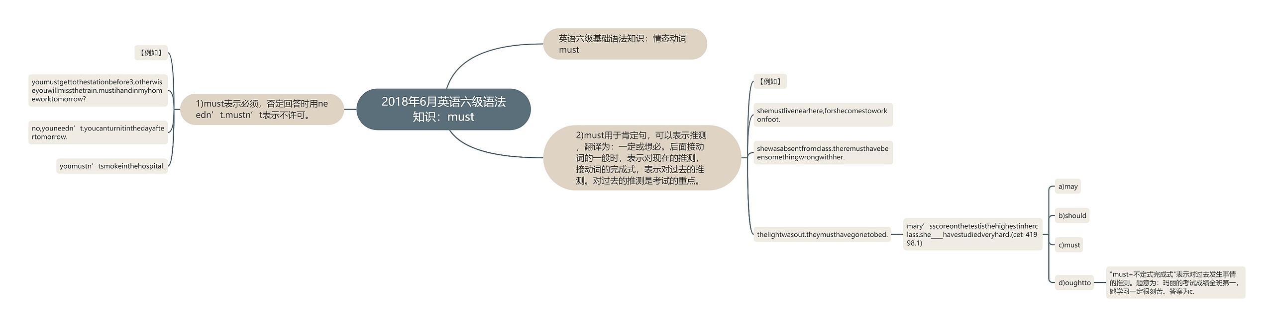 树图思维导图提供《2018年6月英语六级语法知识:must》在线思维导图免费制作,点击“编辑”按钮,可对《2018年6月英语六级语法知识:must》进行在线思维导图编辑,本思维导图属于思维导图模板主题,文件编号是:f5920e7578661209a0bd26aabd7e6645