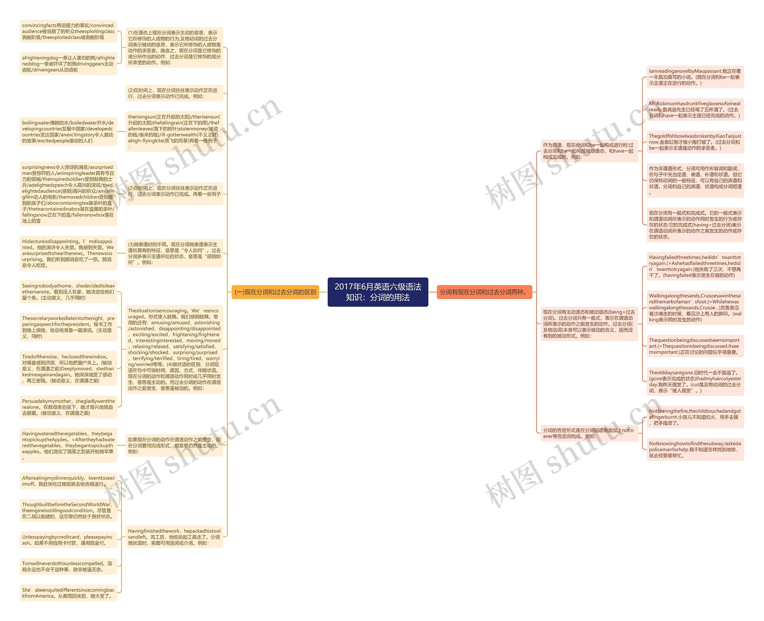 therisingsun(正在升起的太阳)/therisensun(升起的太阳)thefallingrain(正在下的雨)/thefallenleaves(落下的树叶)stolenmoney(被盗的钱/偷来的钱)/ill-gottenwealth(不义之财)ahigh-flyingkite(高飞的风筝)再看一些例子: