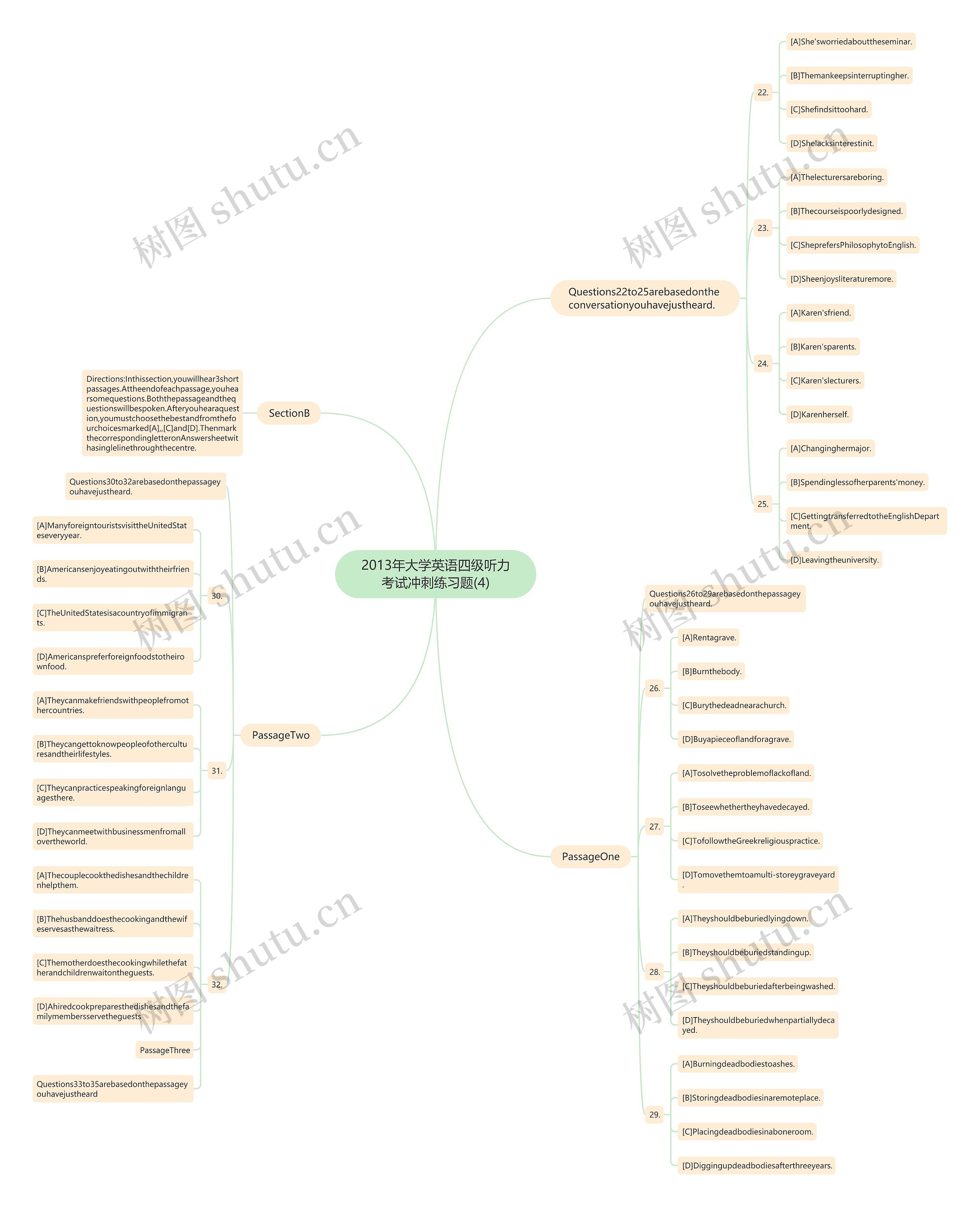 树图思维导图提供《2013年大学英语四级听力考试冲刺练习题(4)》在线思维导图免费制作,点击“编辑”按钮,可对《2013年大学英语四级听力考试冲刺练习题(4)》进行在线思维导图编辑,本思维导图属于思维导图模板主题,文件编号是:78f1b94a09dce7863a14400e1a8bfb4d