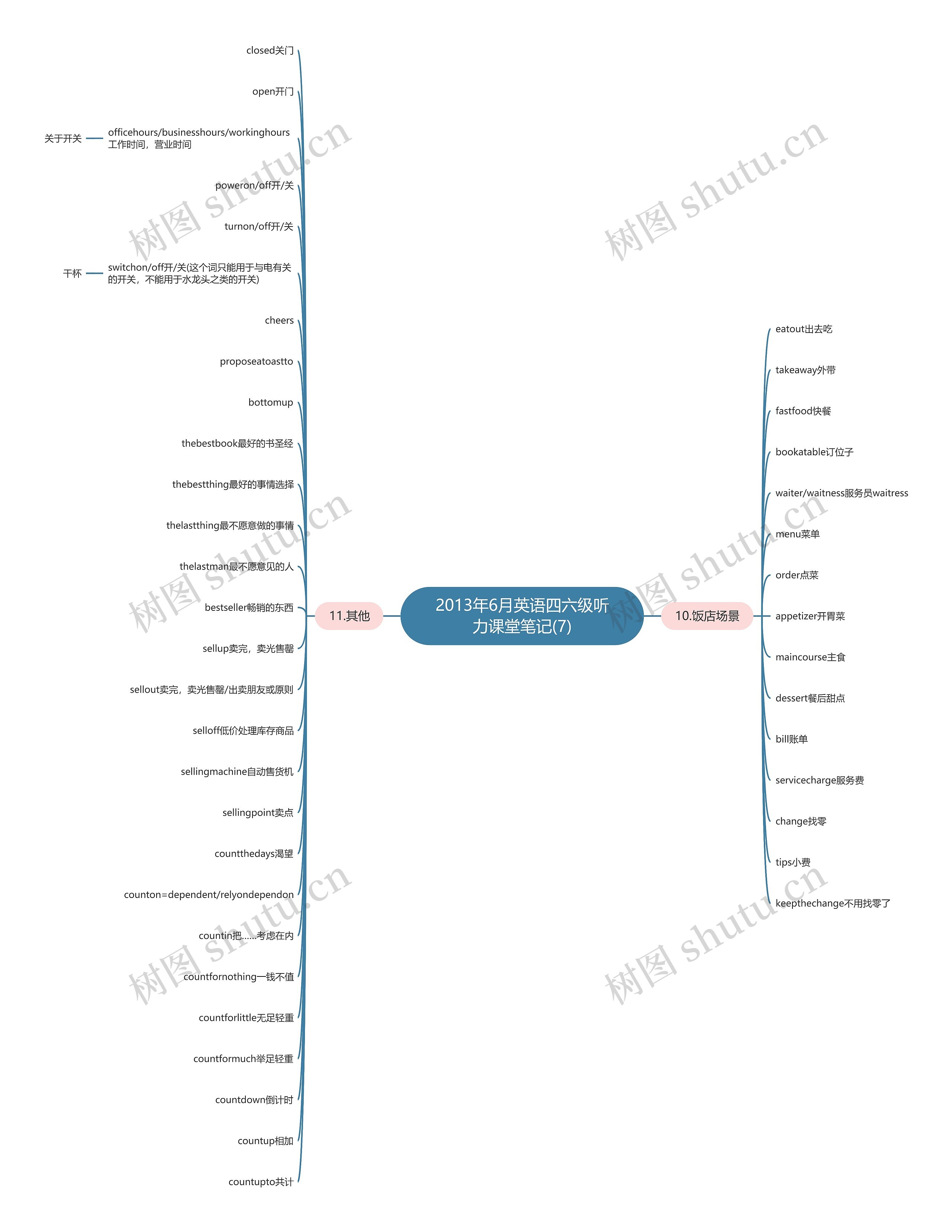 树图思维导图提供《2013年6月英语四六级听力课堂笔记(7)》在线思维导图免费制作,点击“编辑”按钮,可对《2013年6月英语四六级听力课堂笔记(7)》进行在线思维导图编辑,本思维导图属于思维导图模板主题,文件编号是:665bbee30c397fcbaf0946eddc1afd92