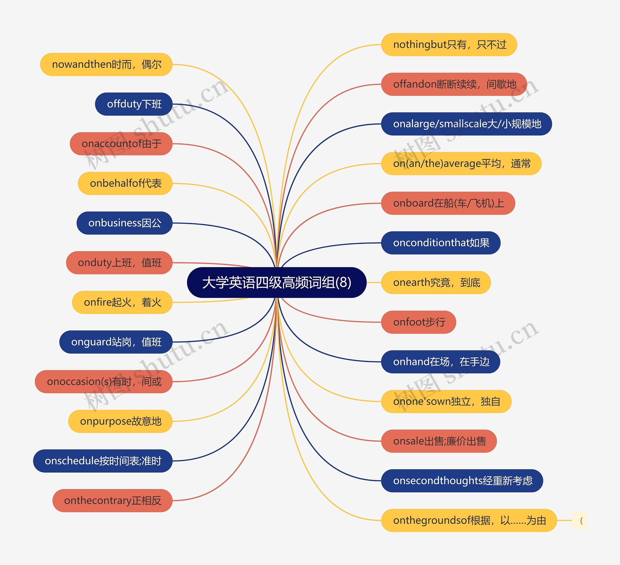 树图思维导图提供《大学英语四级高频词组(8)》在线思维导图免费制作,点击“编辑”按钮,可对《大学英语四级高频词组(8)》进行在线思维导图编辑,本思维导图属于思维导图模板主题,文件编号是:c57d127f269e39b052699b23f871012d
