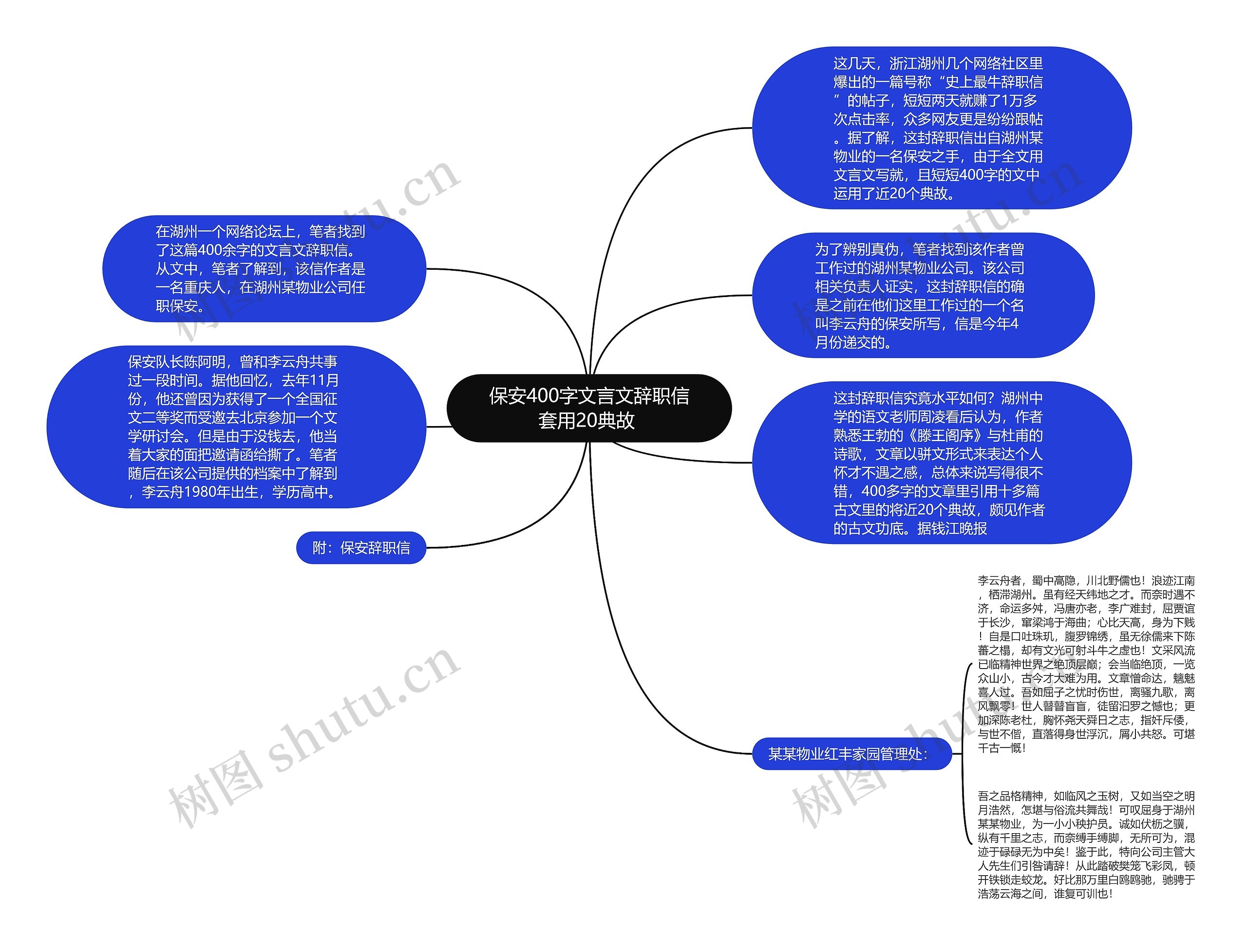 这几天,浙江湖州几个网络社区里爆出的一篇号称“史上最牛辞职信”的帖子,短短两天就赚了1万多次点击率,众多网友更是纷纷跟帖。据了解,这封辞职信出自湖州某物业的一名保安之手,由于全文用文言文写就,且短短400字的文中运用了近20个典故。