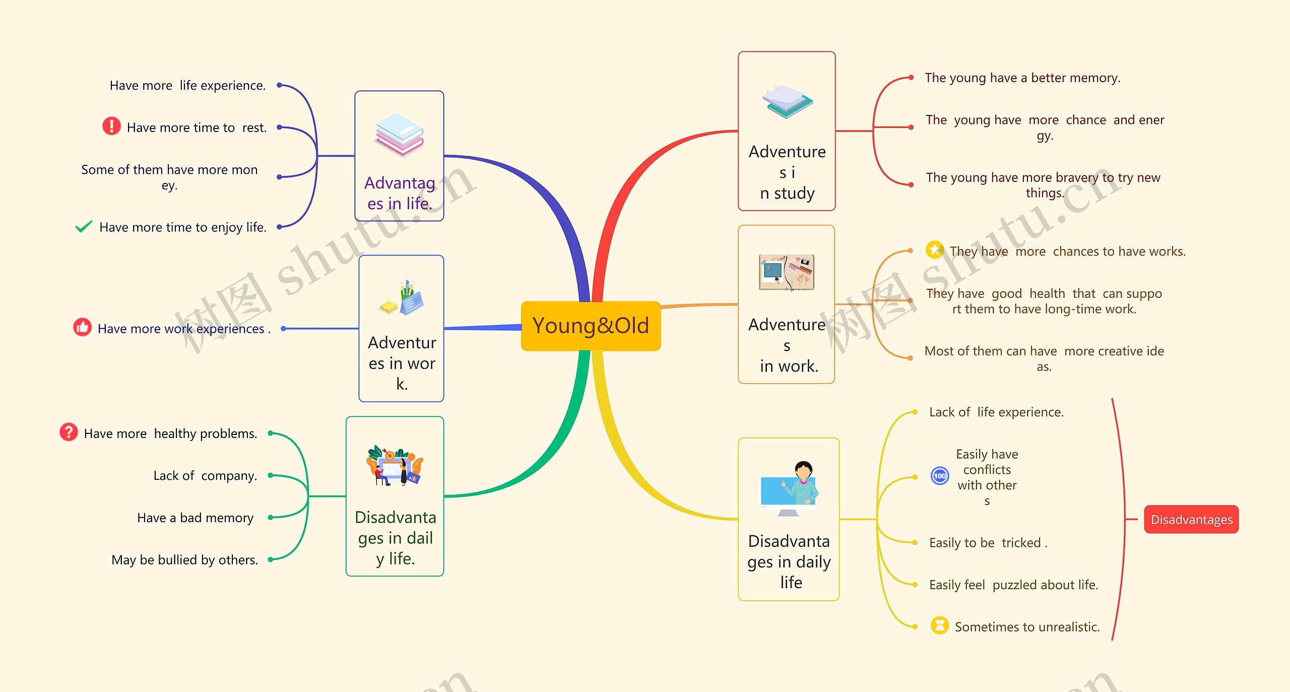 树图思维导图提供《Young&Old》在线思维导图免费制作,点击“编辑”按钮,可对《Young&Old》进行在线思维导图编辑,本思维导图属于思维导图模板主题,文件编号是:06b8323c1bd44166cb67a2bbdac16225