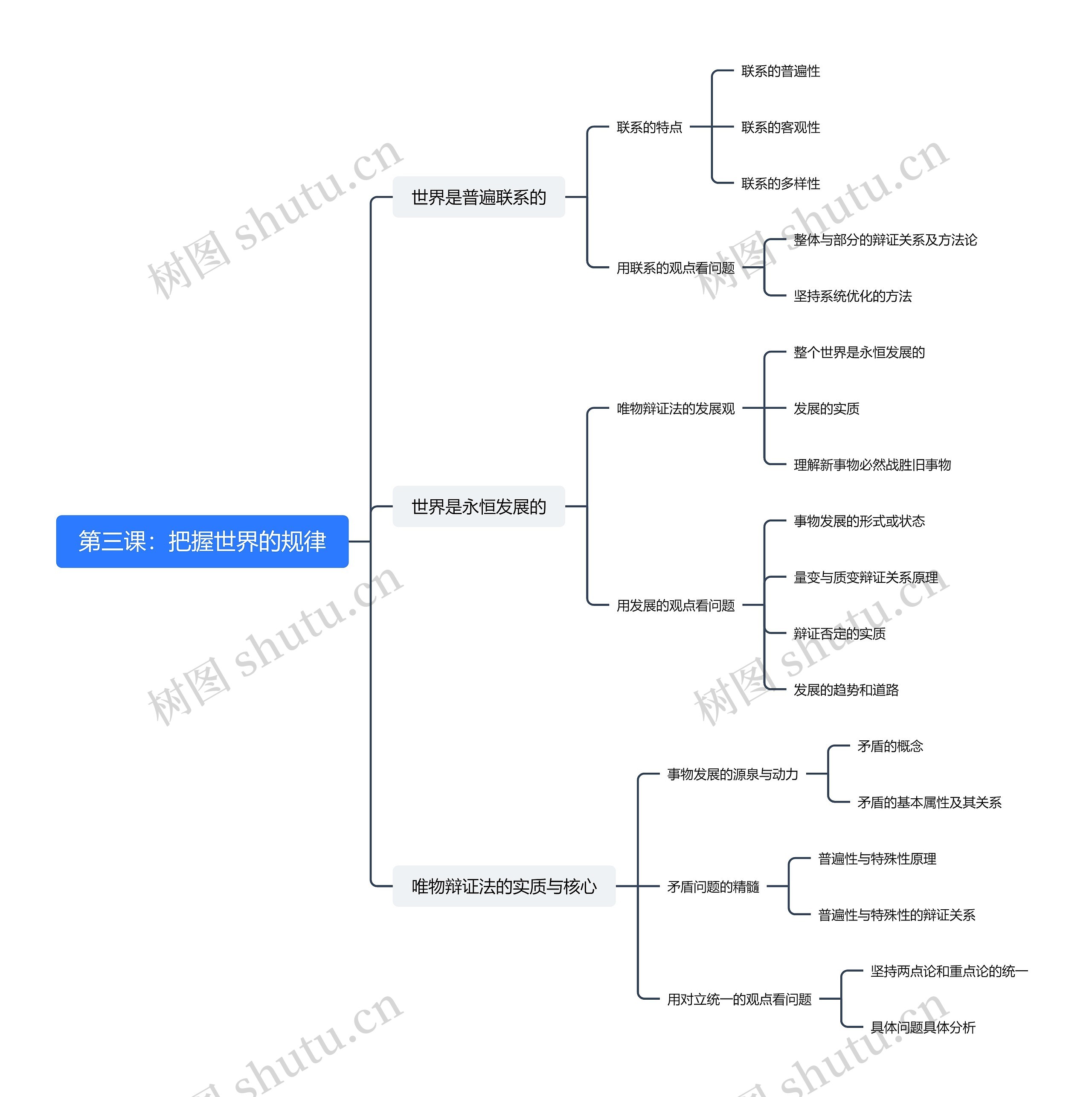 树图思维导图提供《第三课:把握世界的规律》在线思维导图免费制作,点击“编辑”按钮,可对《第三课:把握世界的规律》进行在线思维导图编辑,本思维导图属于思维导图模板主题,文件编号是:4bce1f72285f83cf470a16ea9d0152ea