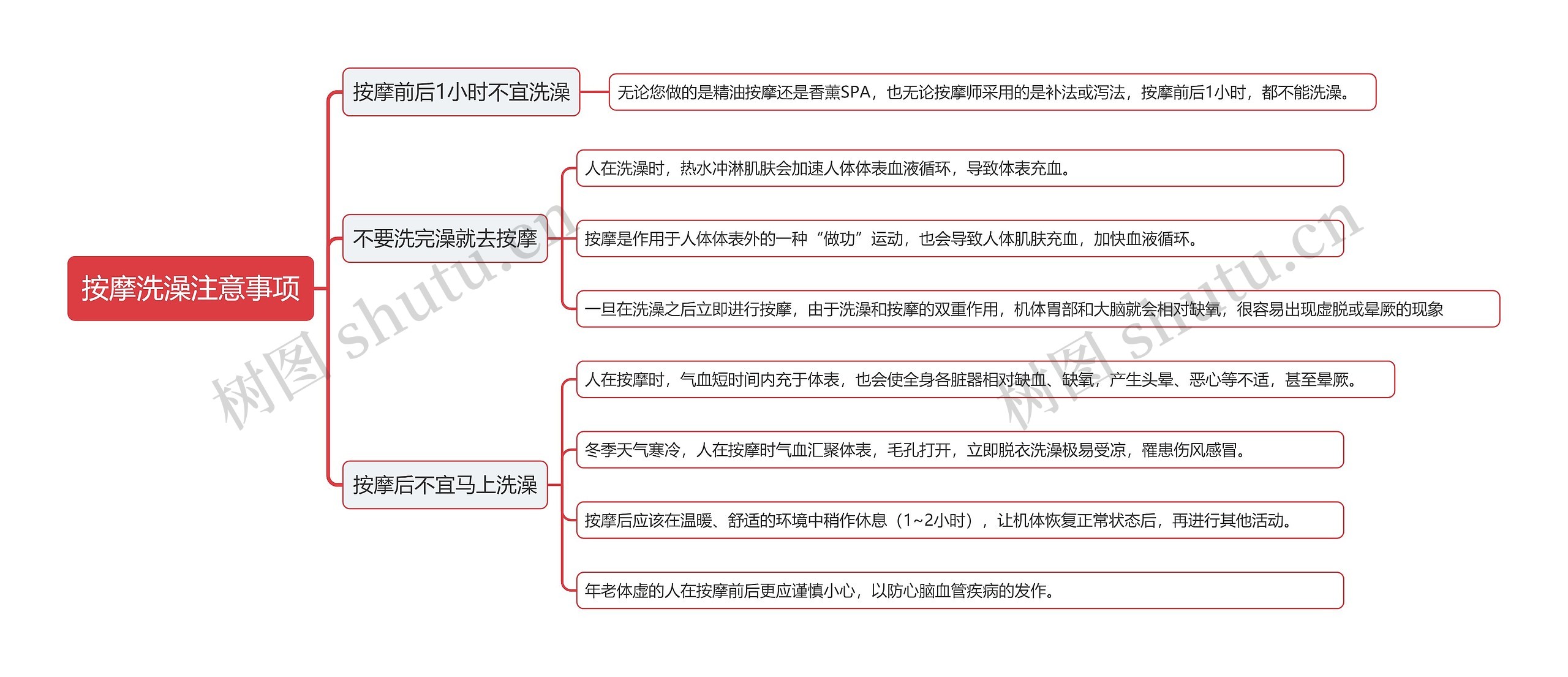 生活健康之按摩洗澡注意事项总结概括思维导图