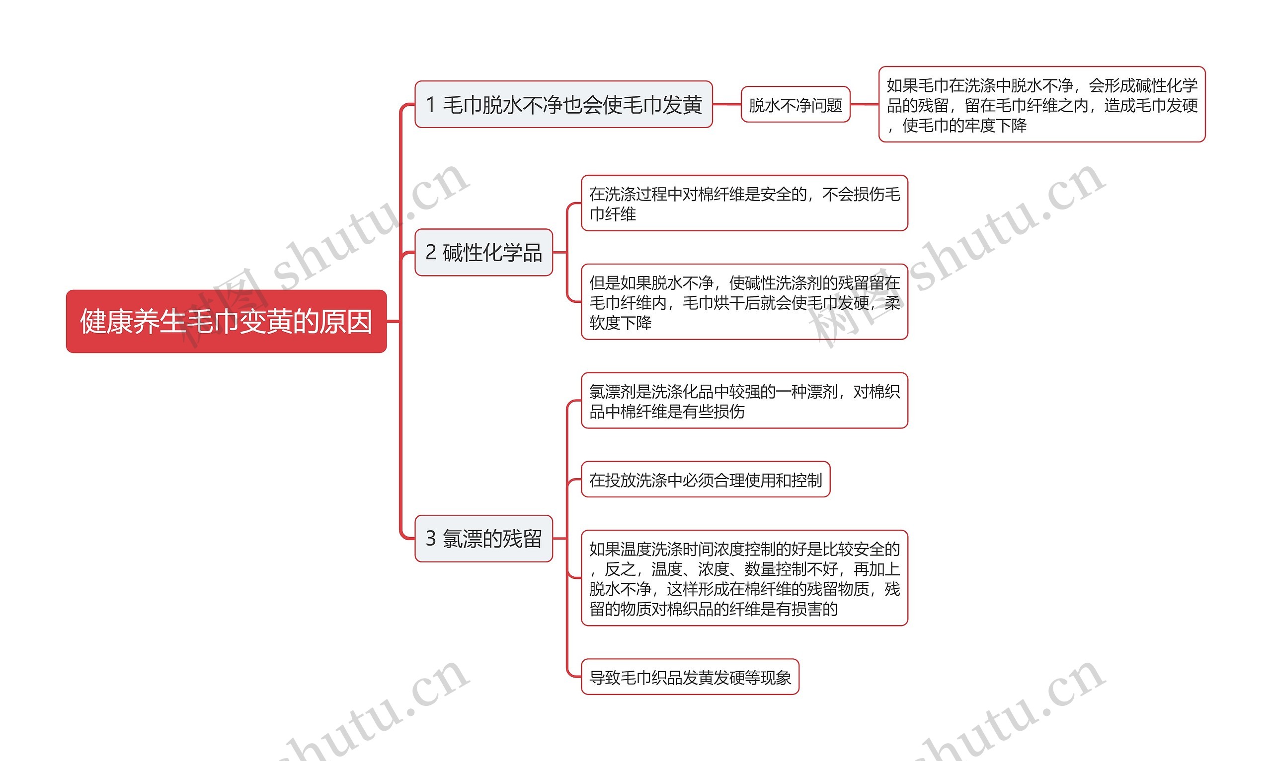 树图思维导图提供《健康养生毛巾变黄的原因思维导图》在线思维导图免费制作,点击“编辑”按钮,可对《健康养生毛巾变黄的原因思维导图》进行在线思维导图编辑,本思维导图属于思维导图模板主题,文件编号是:32d1e78aef870921f9de1fe20bda56e2