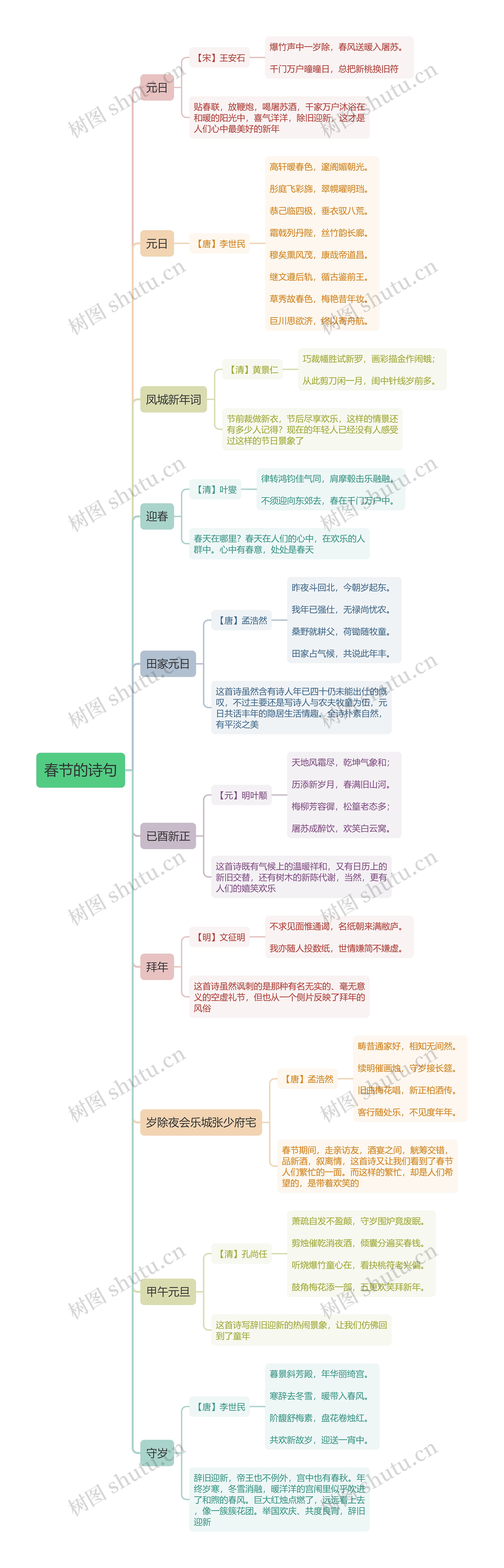 树图思维导图提供《春节的诗句思维导图》在线思维导图免费制作,点击“编辑”按钮,可对《春节的诗句思维导图》进行在线思维导图编辑,本思维导图属于思维导图模板主题,文件编号是:d035ecf374a449cb0c3492af31be6691