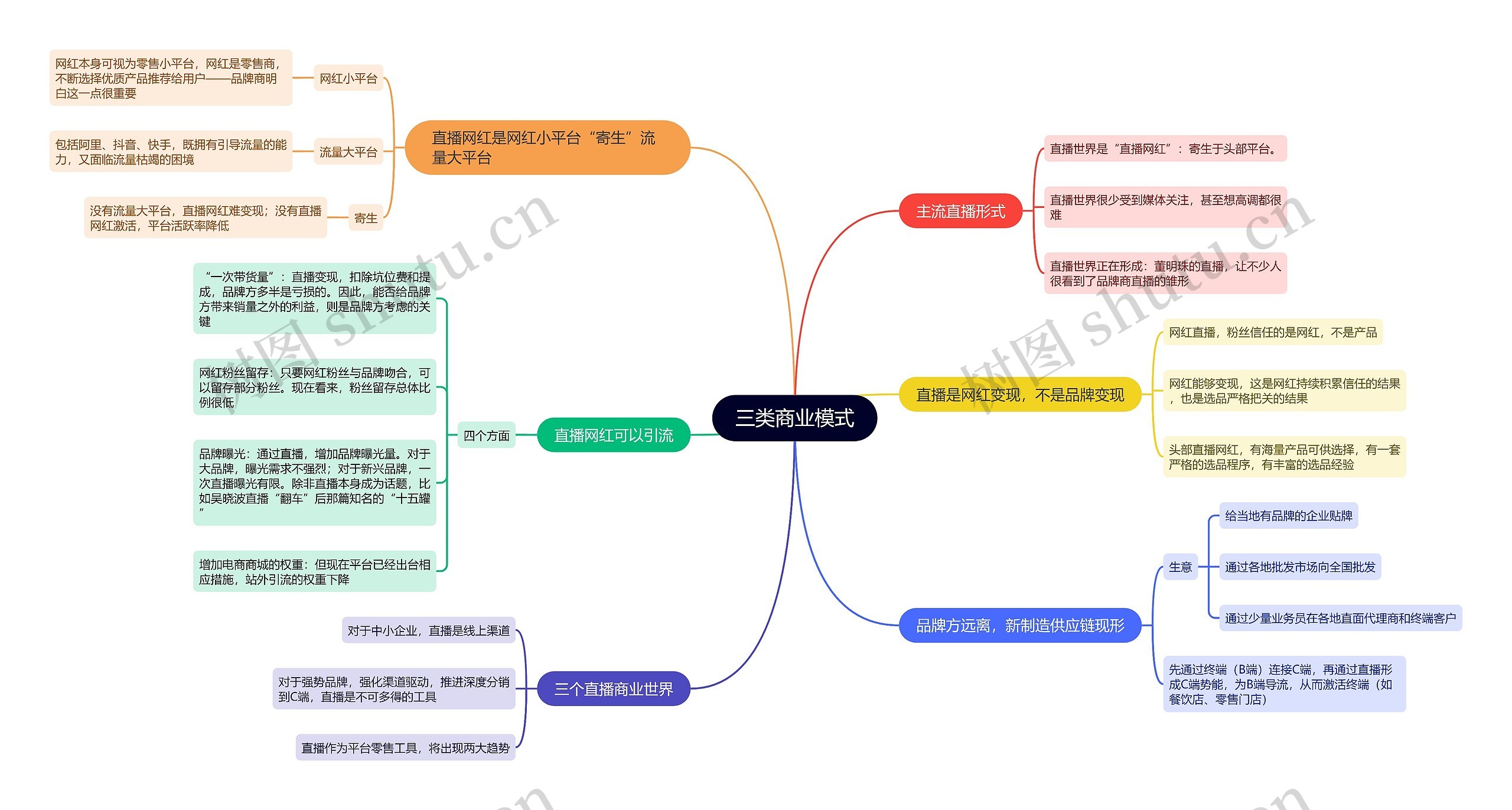 三类商业模式,直播网红是网红小平台“寄生”流量大平台、直播网红可以引流、主流直播形式、品牌方远离,新制造供应链现形