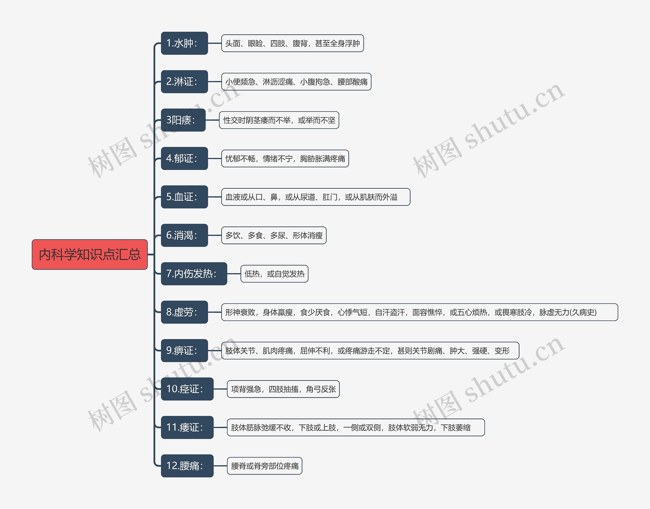 树图思维导图提供《内科学知识点汇总思维导图》在线思维导图免费制作,点击“编辑”按钮,可对《内科学知识点汇总思维导图》进行在线思维导图编辑,本思维导图属于思维导图模板主题,文件编号是:55074651ae7c4b464683a79031ee44a1