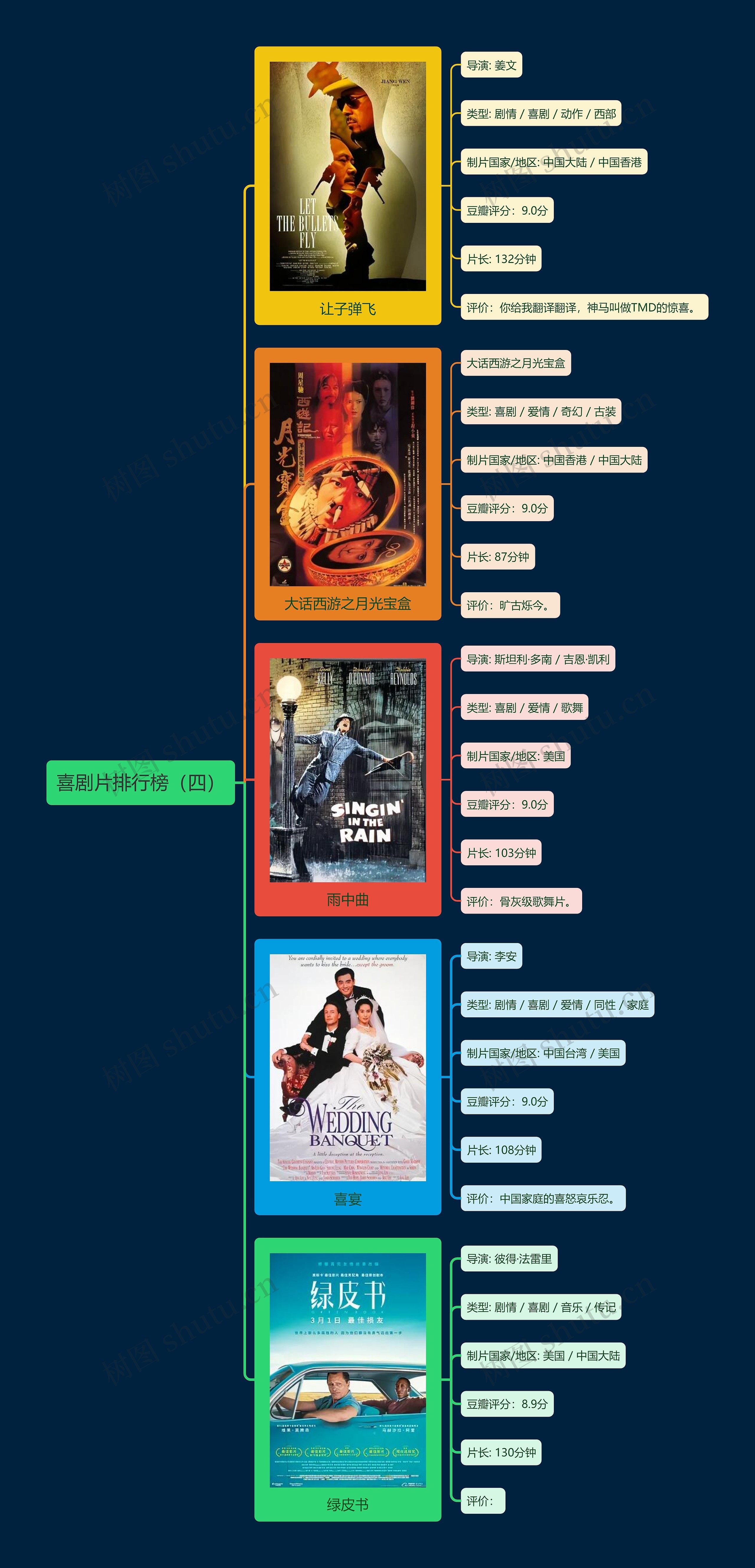 树图思维导图提供《喜剧片排行榜(四)思维导图》在线思维导图免费制作,点击“编辑”按钮,可对《喜剧片排行榜(四)思维导图》进行在线思维导图编辑,本思维导图属于思维导图模板主题,文件编号是:7991e05b8fe98c71574d594cc351a64a