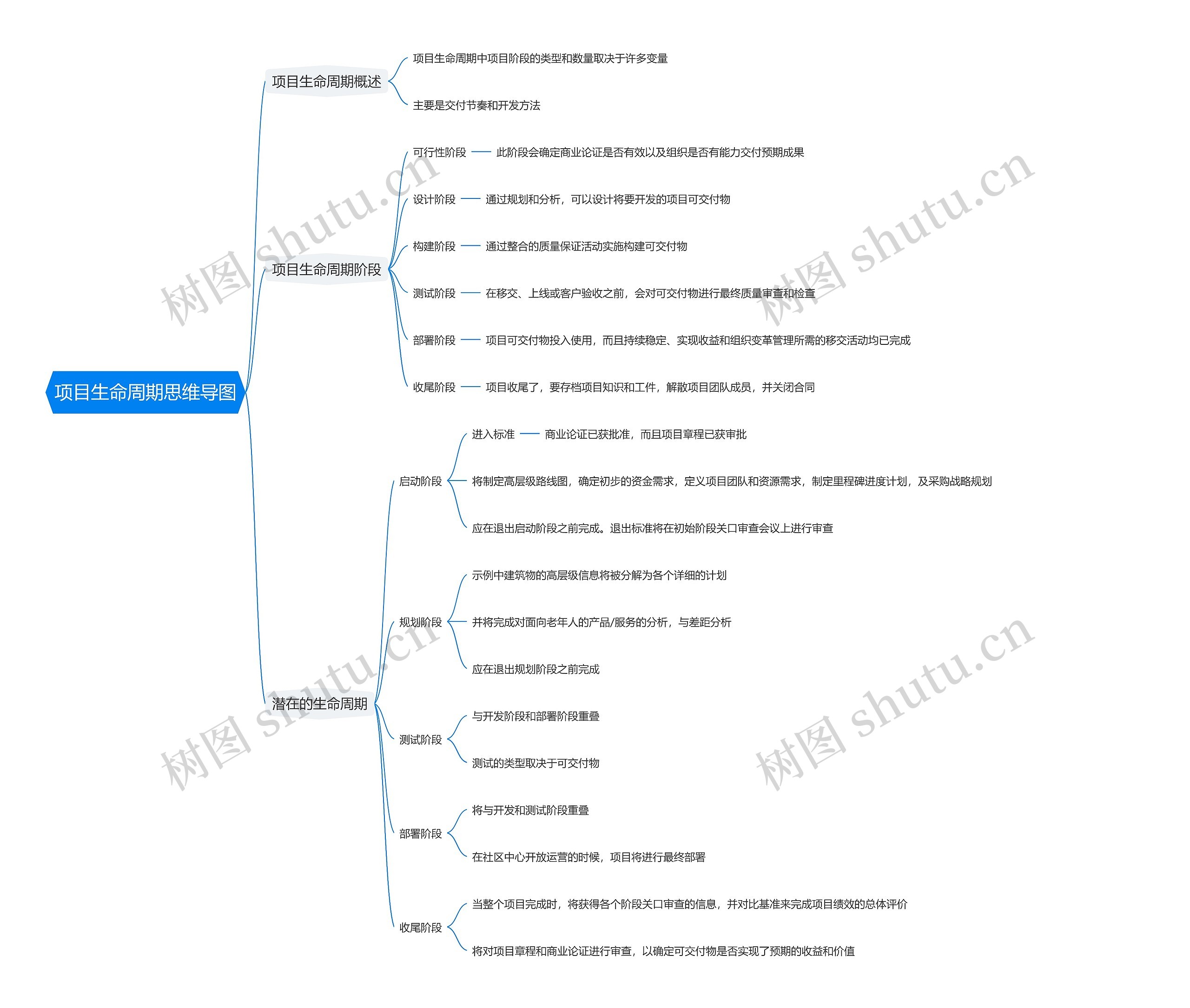 树图思维导图提供《项目生命周期思维导图》在线思维导图免费制作,点击“编辑”按钮,可对《项目生命周期思维导图》进行在线思维导图编辑,本思维导图属于思维导图模板主题,文件编号是:71c3f30f8ddf449d75b31328b41f648b