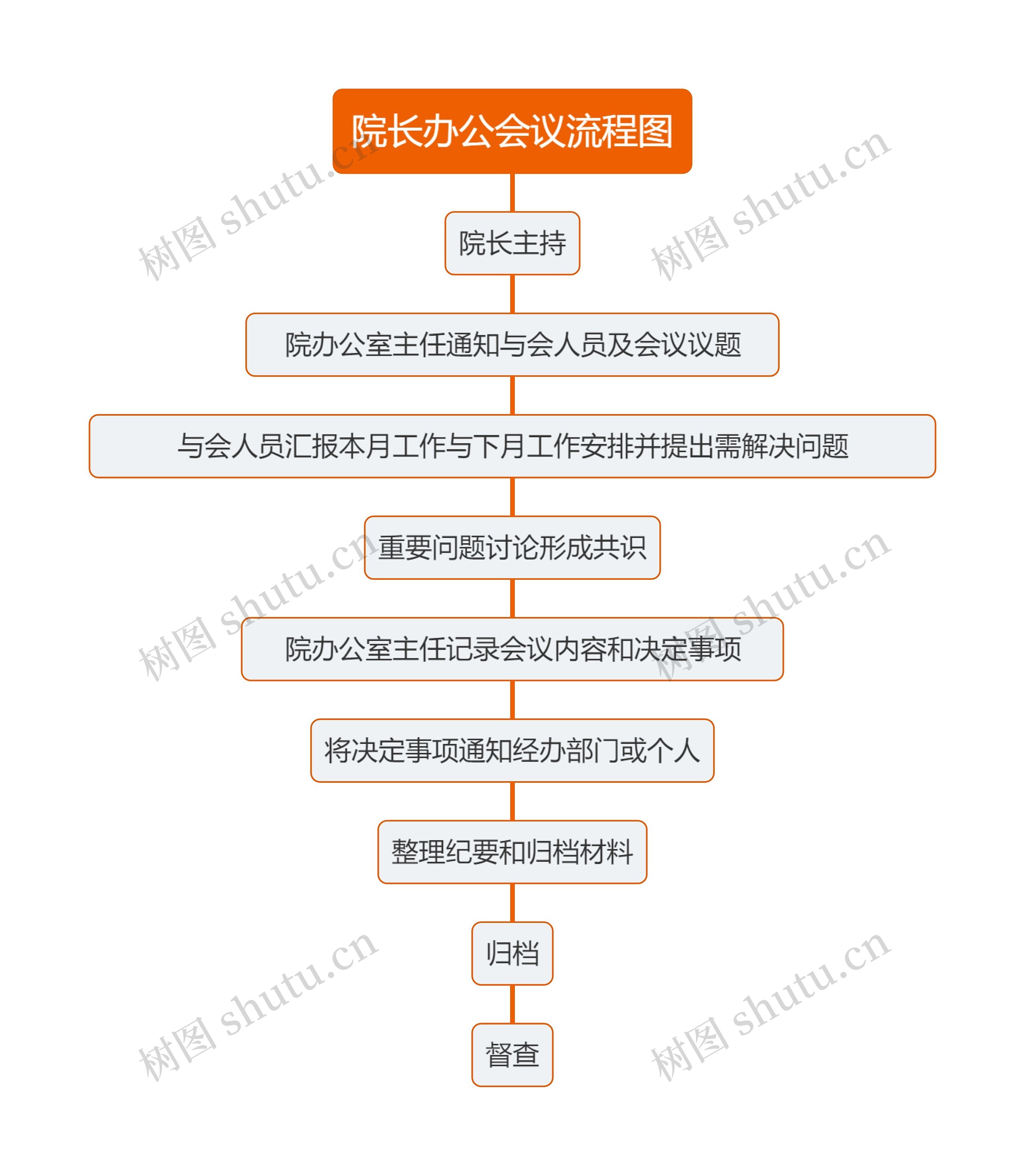 树图思维导图提供《院长办公会议流程图思维导图》在线思维导图免费制作,点击“编辑”按钮,可对《院长办公会议流程图思维导图》进行在线思维导图编辑,本思维导图属于思维导图模板主题,文件编号是:52a965ad683200dac37916bb081e2cf3