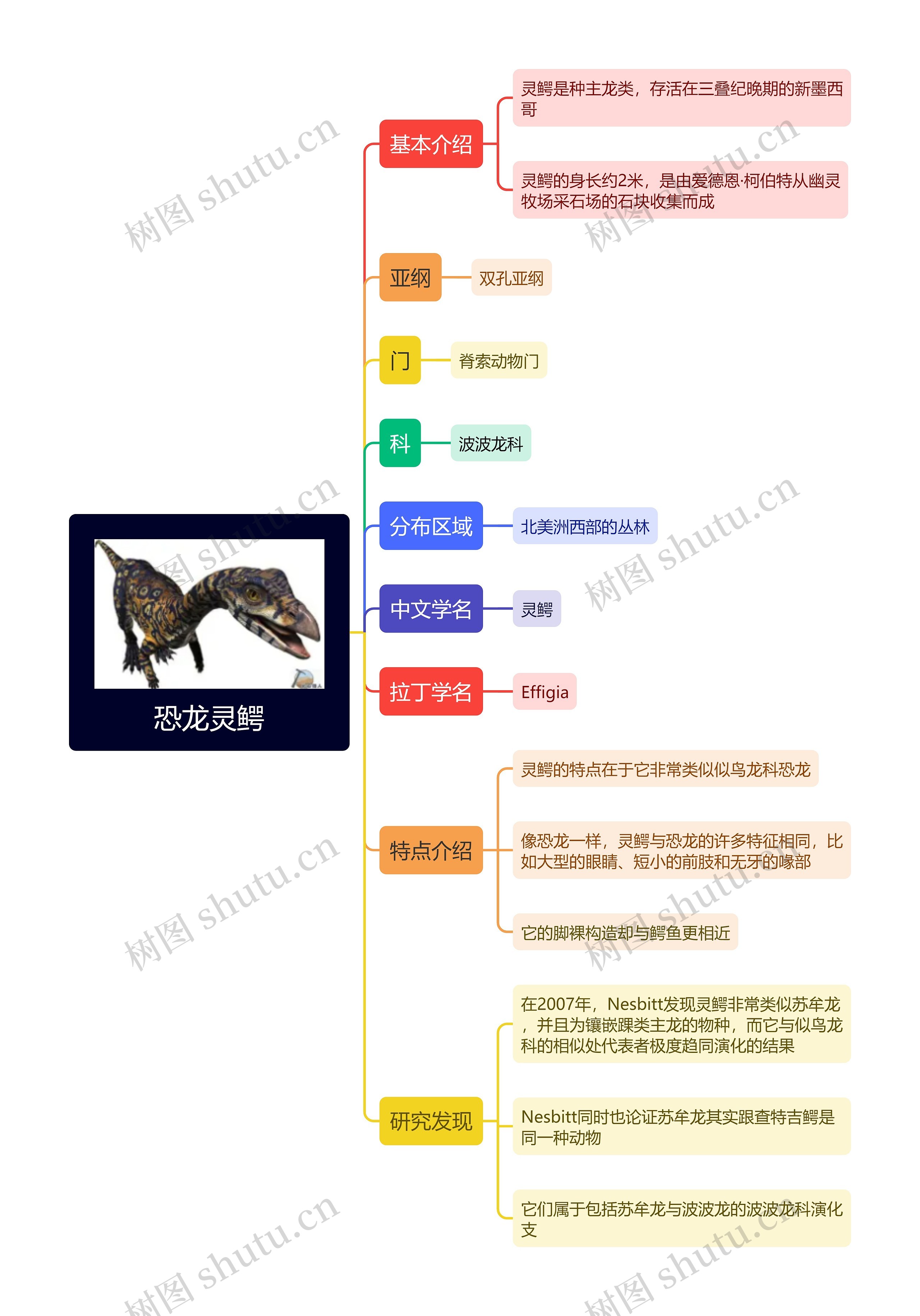 树图思维导图提供《恐龙灵鳄》在线思维导图免费制作,点击“编辑”按钮,可对《恐龙灵鳄》进行在线思维导图编辑,本思维导图属于思维导图模板主题,文件编号是:ee50bc30caa60183c50cfb10f93308ac
