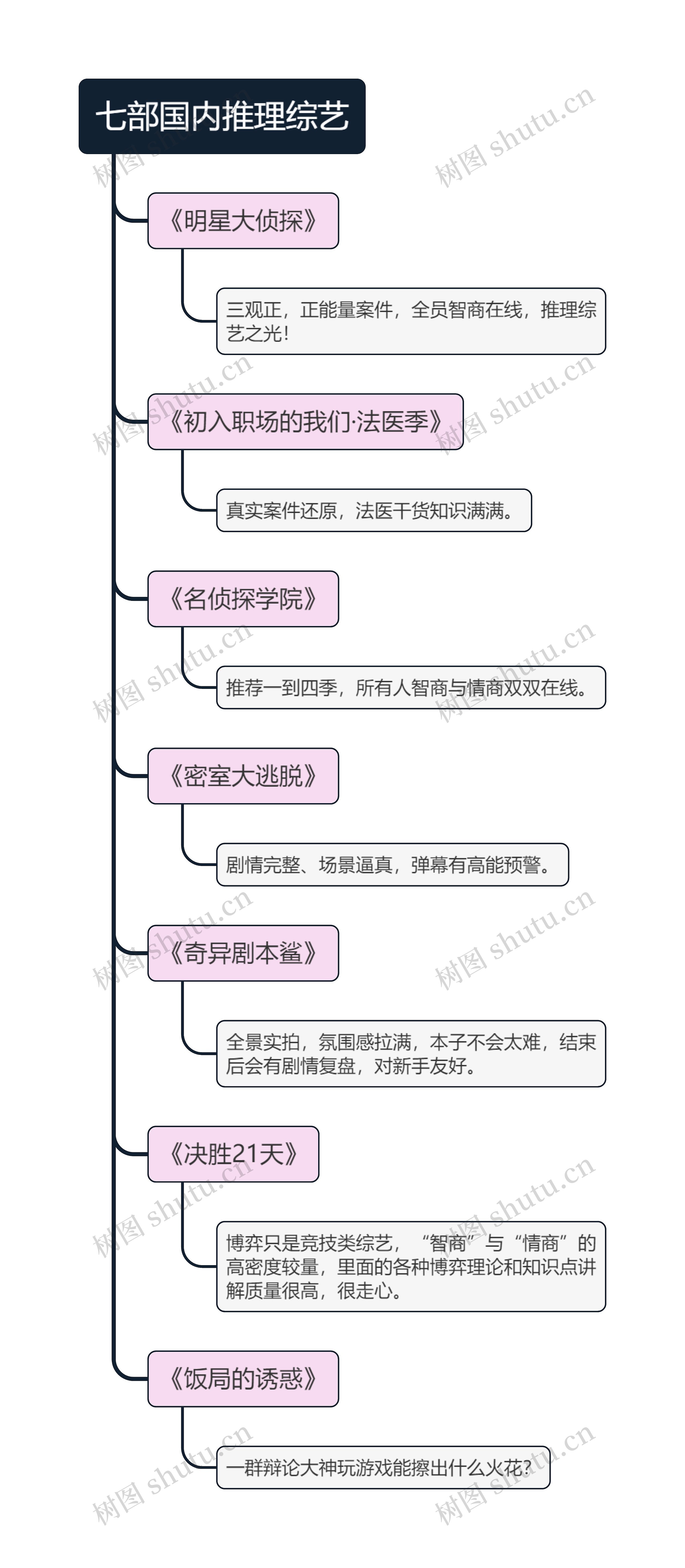 该思维导图推荐了七部国内高质量的推理综艺。