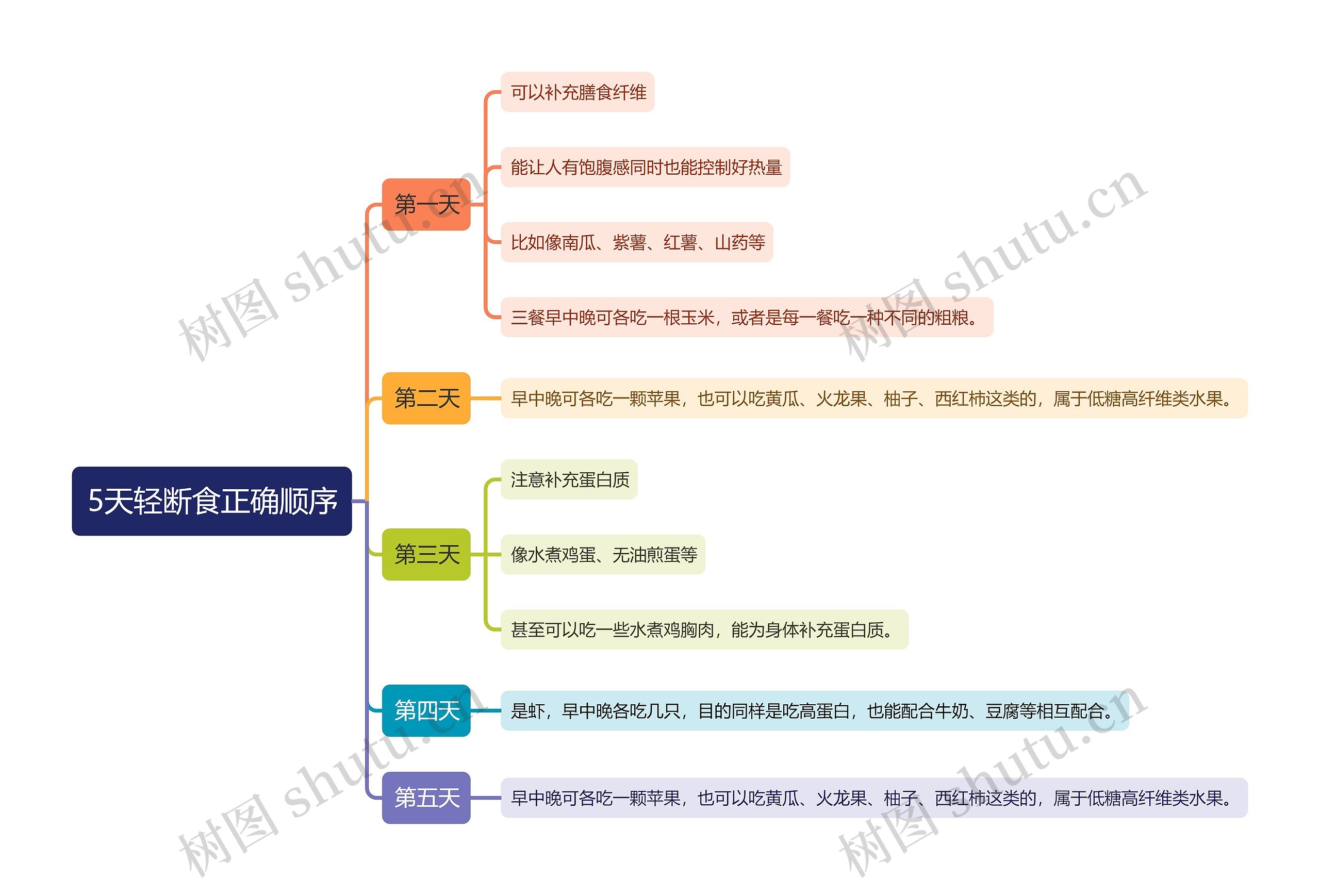 树图思维导图提供《5天轻断食正确顺序》在线思维导图免费制作,点击“编辑”按钮,可对《5天轻断食正确顺序》进行在线思维导图编辑,本思维导图属于思维导图模板主题,文件编号是:8cea76f0a77599cf9a7ea0ec3ac63ecd